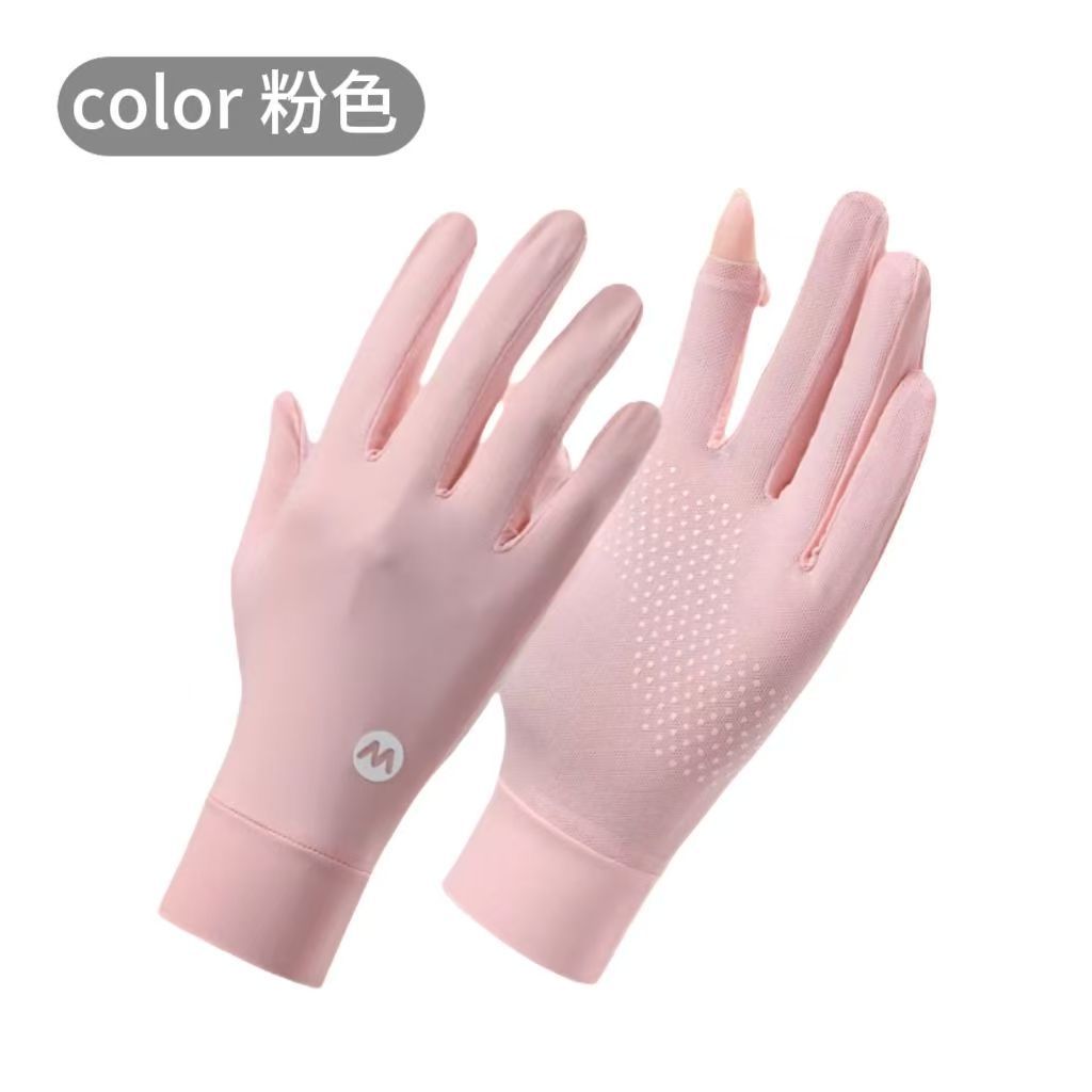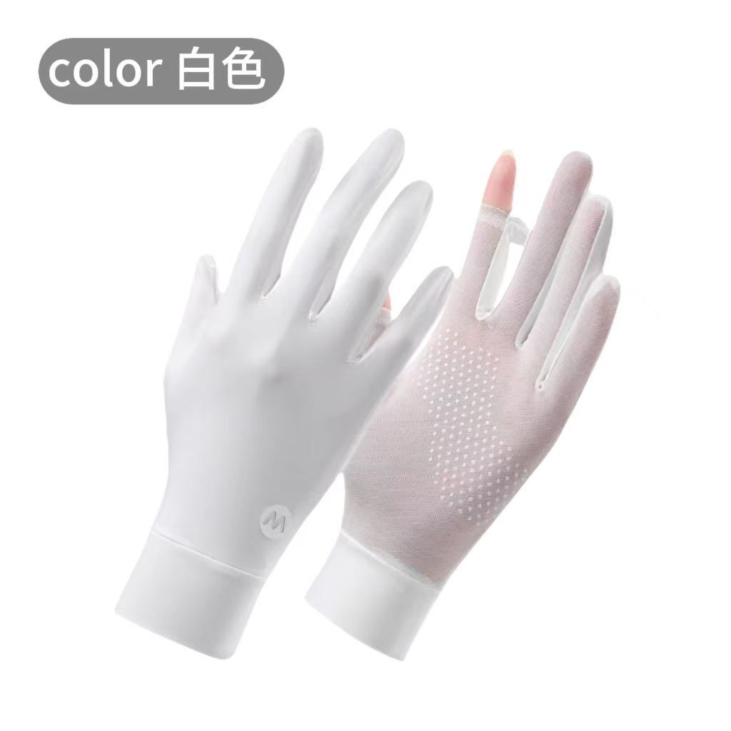 여름 태양 보호 장갑 여성의 얼음 실크 초박형 승마 미끄럼 방지 터치 스크린 통기성 UV 노출 손가락 야외 운전