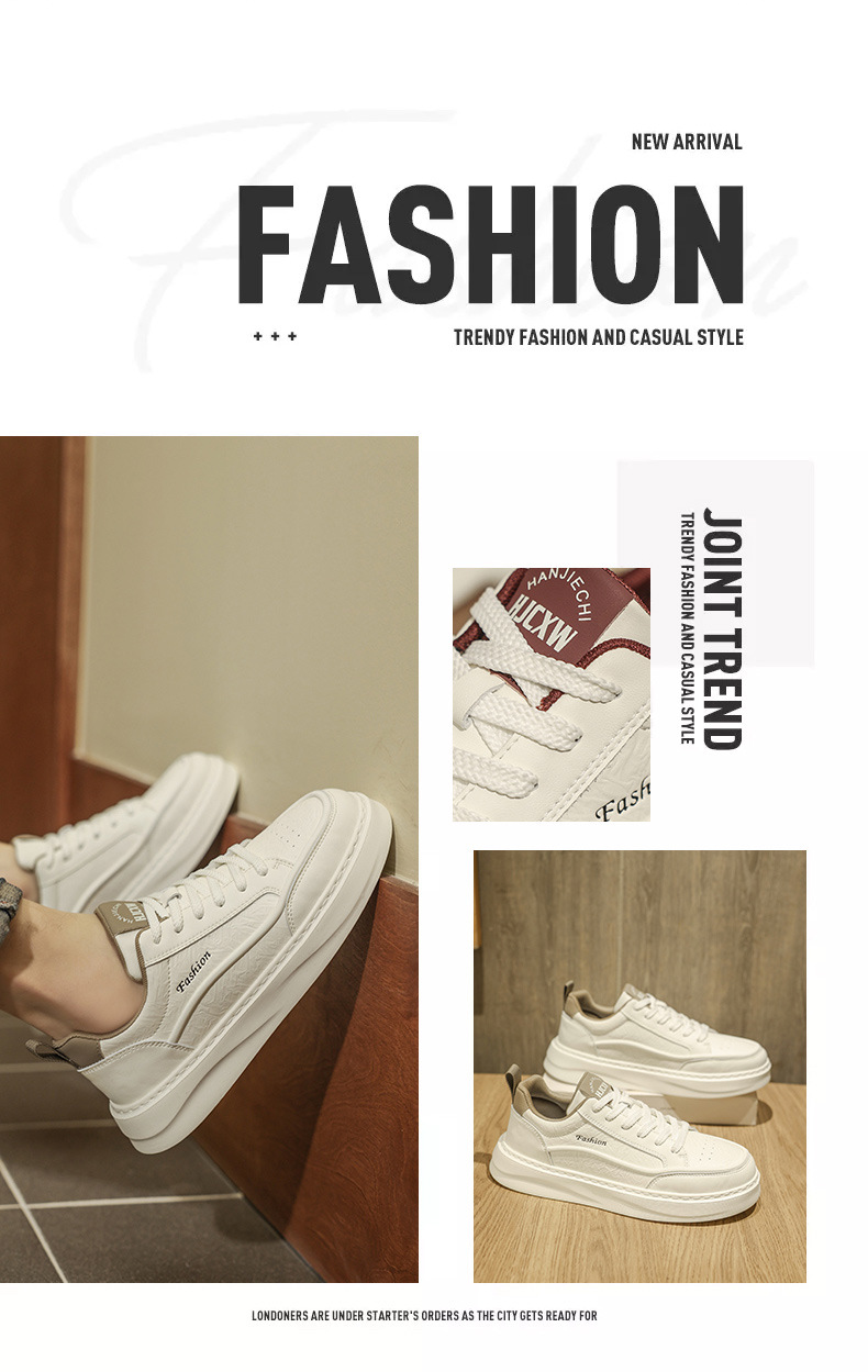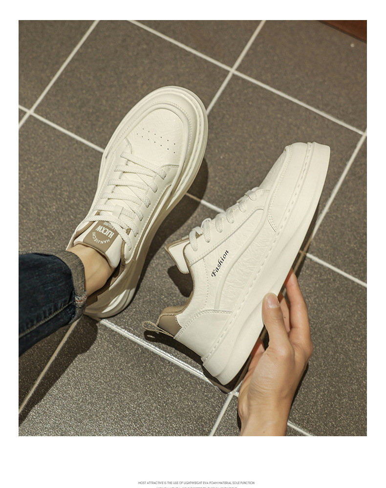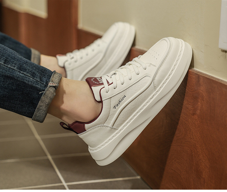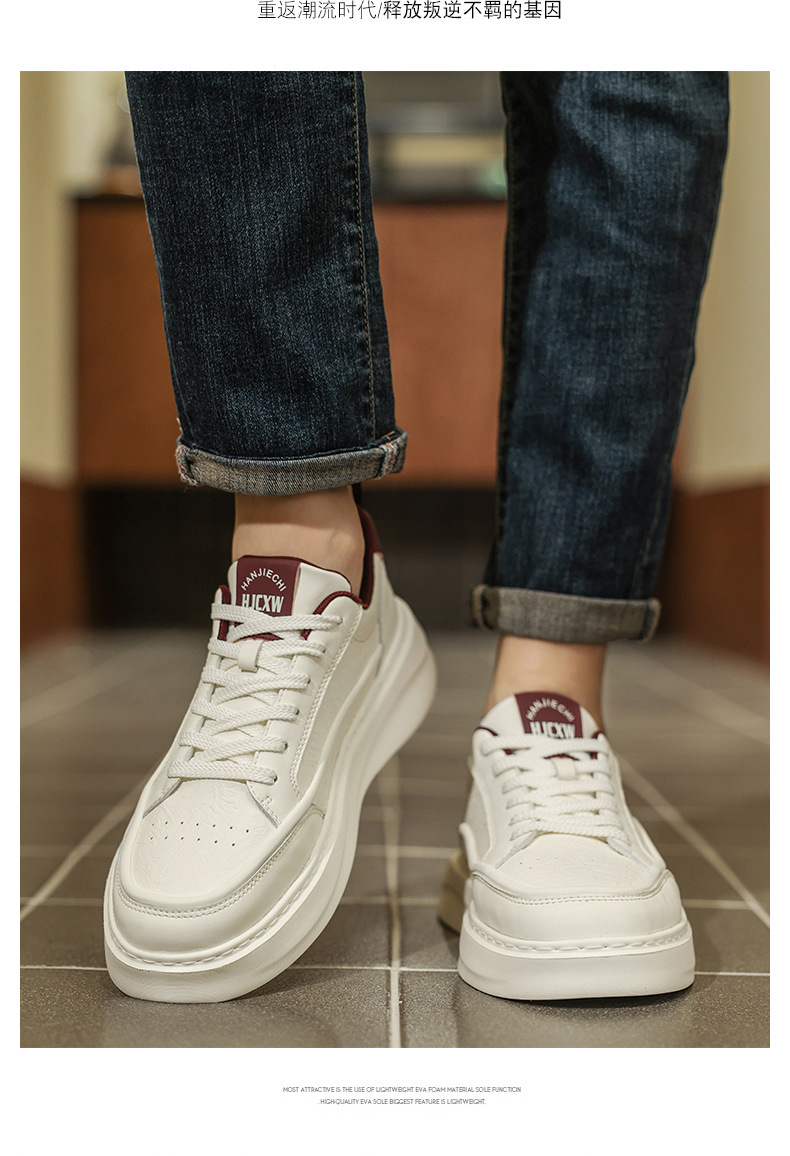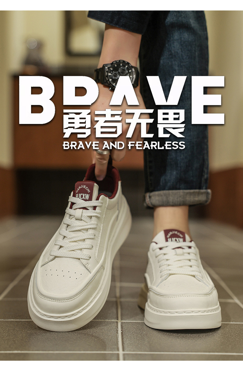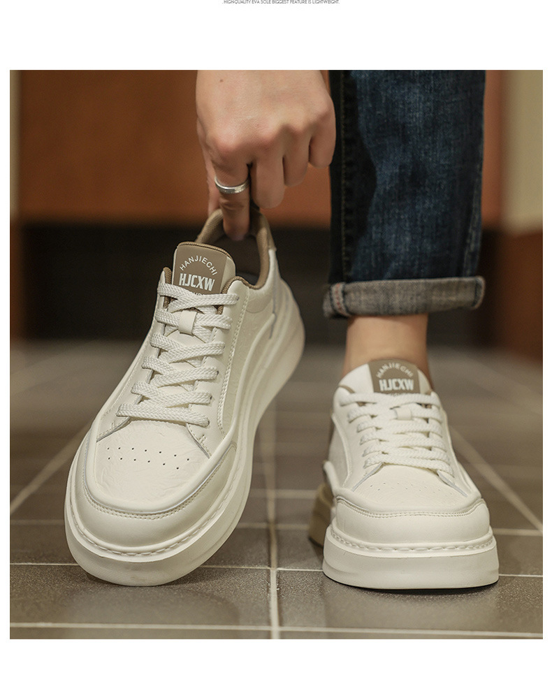 남자 신발 2025 봄 하이 엔드 올 매치 캐주얼 남성 운동화 가죽 탑 두꺼운 단독 증가 흰색 트렌디 신발스토어 가기