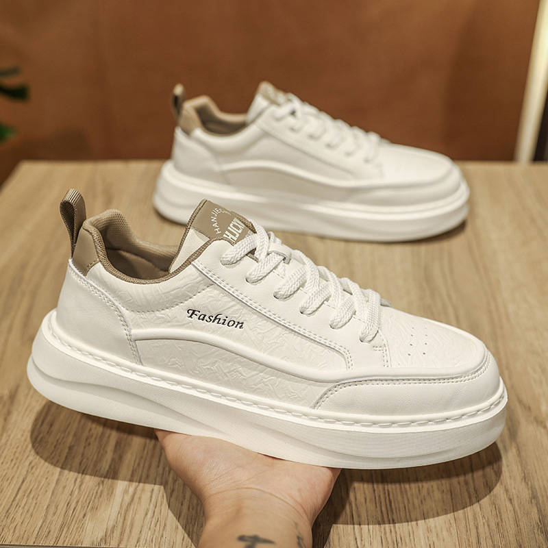 남자 신발 2025 봄 하이 엔드 올 매치 캐주얼 남성 운동화 가죽 탑 두꺼운 단독 증가 흰색 트렌디 신발