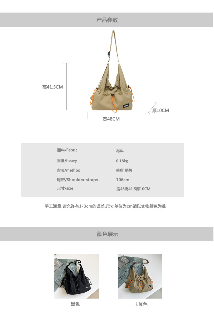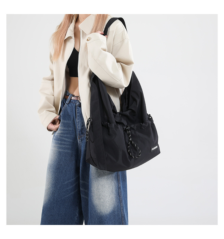대용량 나일론 가방 여성 2025 새로운 유행 캐주얼 주름 대학생 클래스-통근 가방 커플 크로스 바디 백스토어 가기