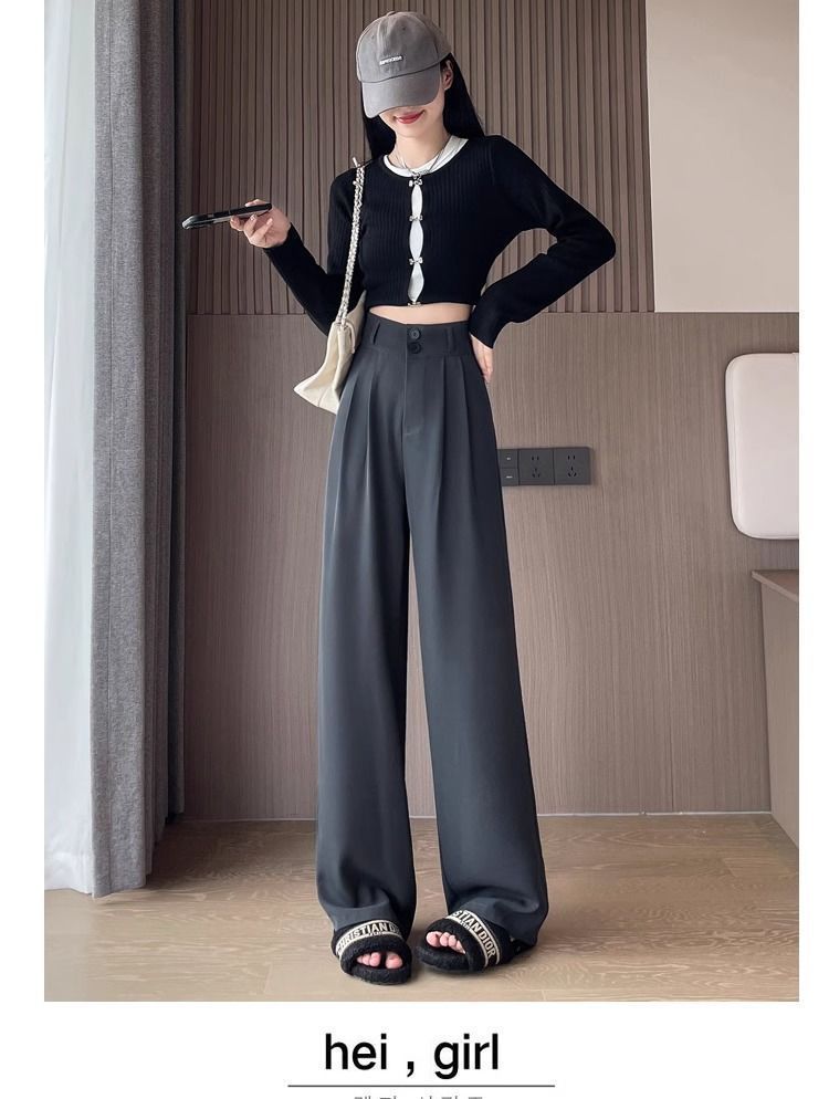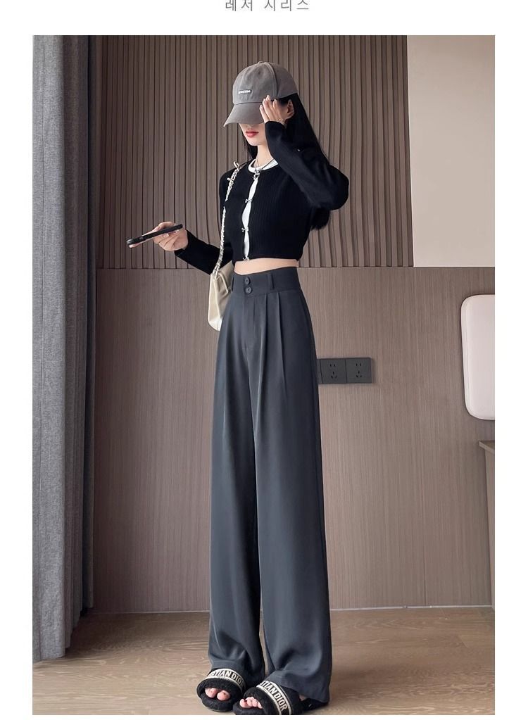 가을 다크 브라운 좁은 넓은 다리 바지 여성의 봄과 가을 2025 새로운 배 모양의 몸 슬리밍 스트레이트 하이 엔드 세트 바지