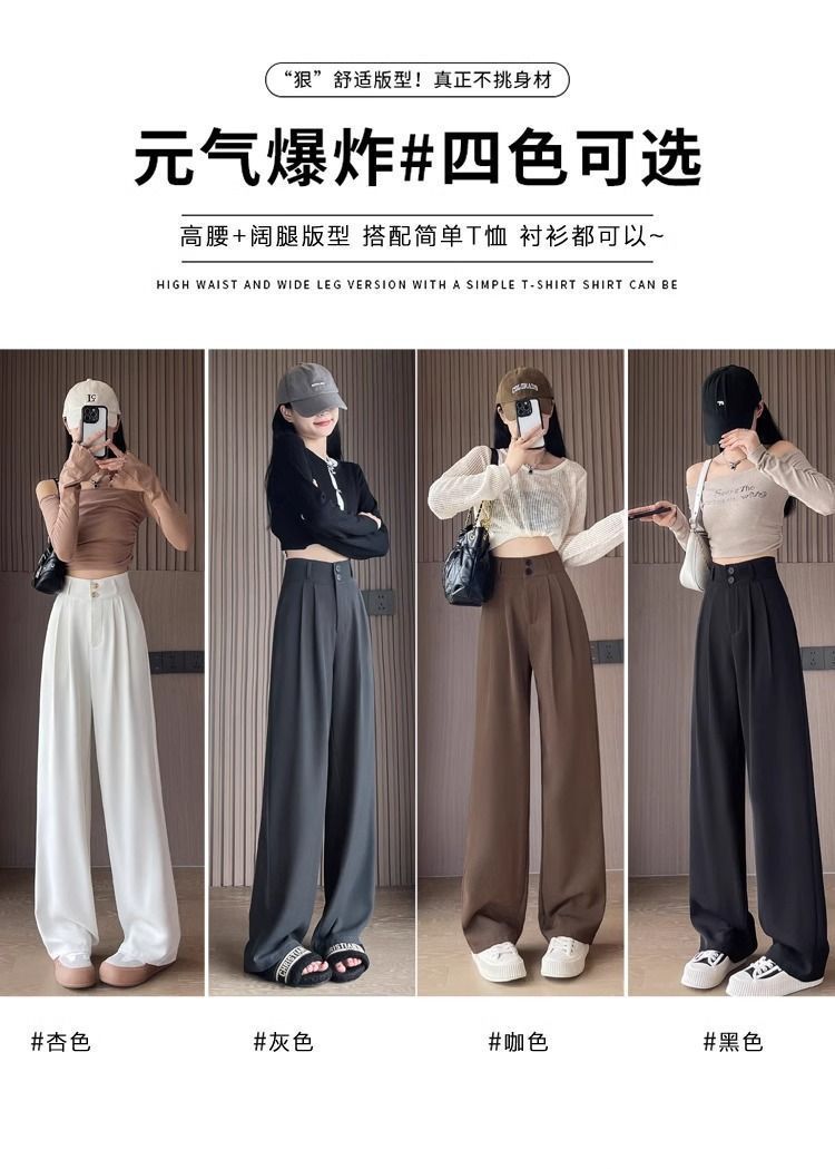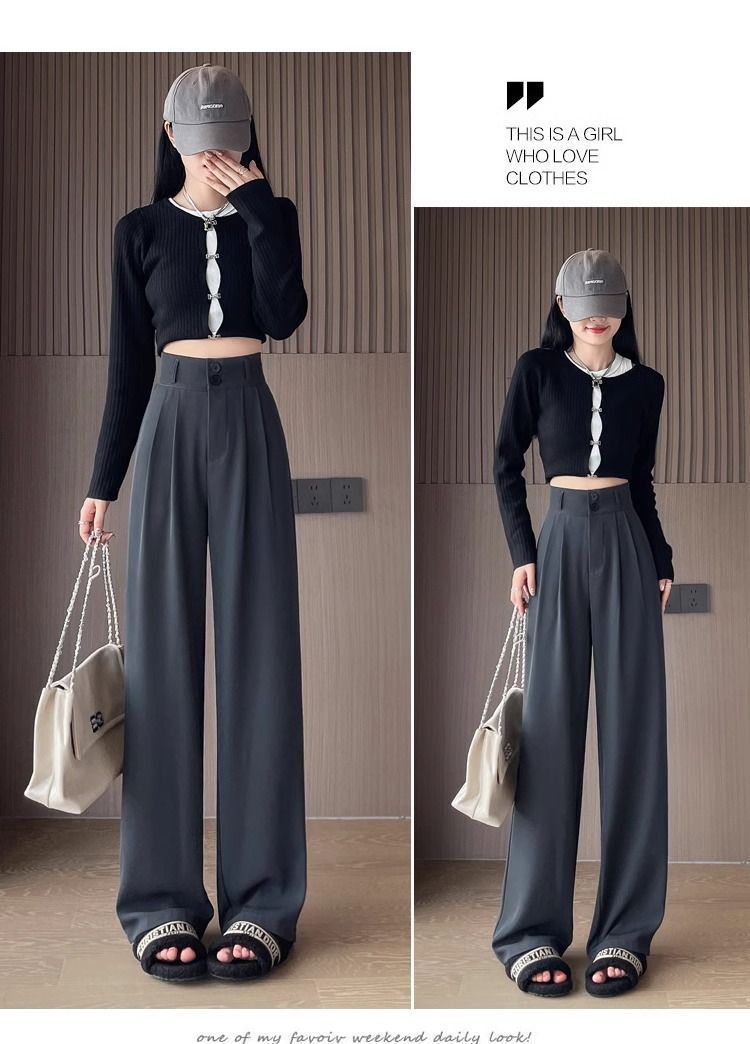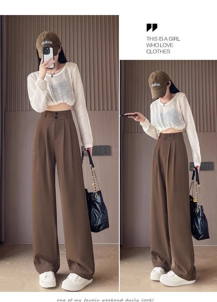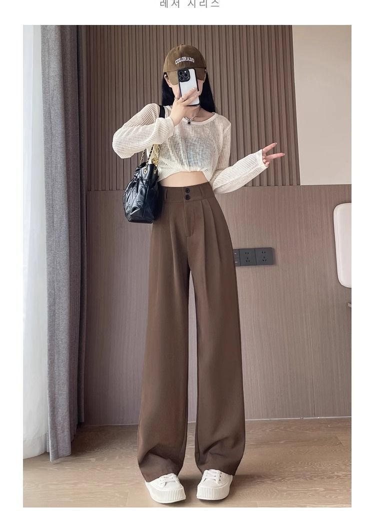 가을 다크 브라운 좁은 넓은 다리 바지 여성의 봄과 가을 2025 새로운 배 모양의 몸 슬리밍 스트레이트 하이 엔드 세트 바지스토어 가기