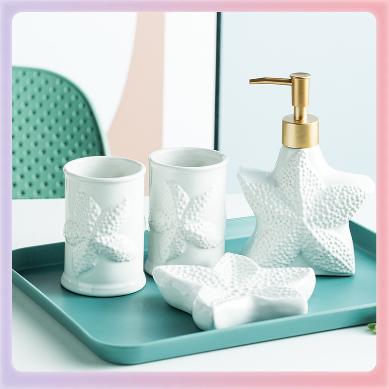 ✅북유럽 오션 시리즈 욕실 화장실 세트 4 피스 욕실 용품 화장실 컵 모델 룸 간단한 장식품스토어 가기
