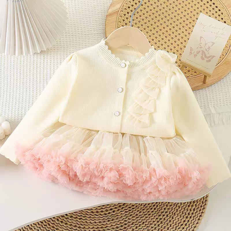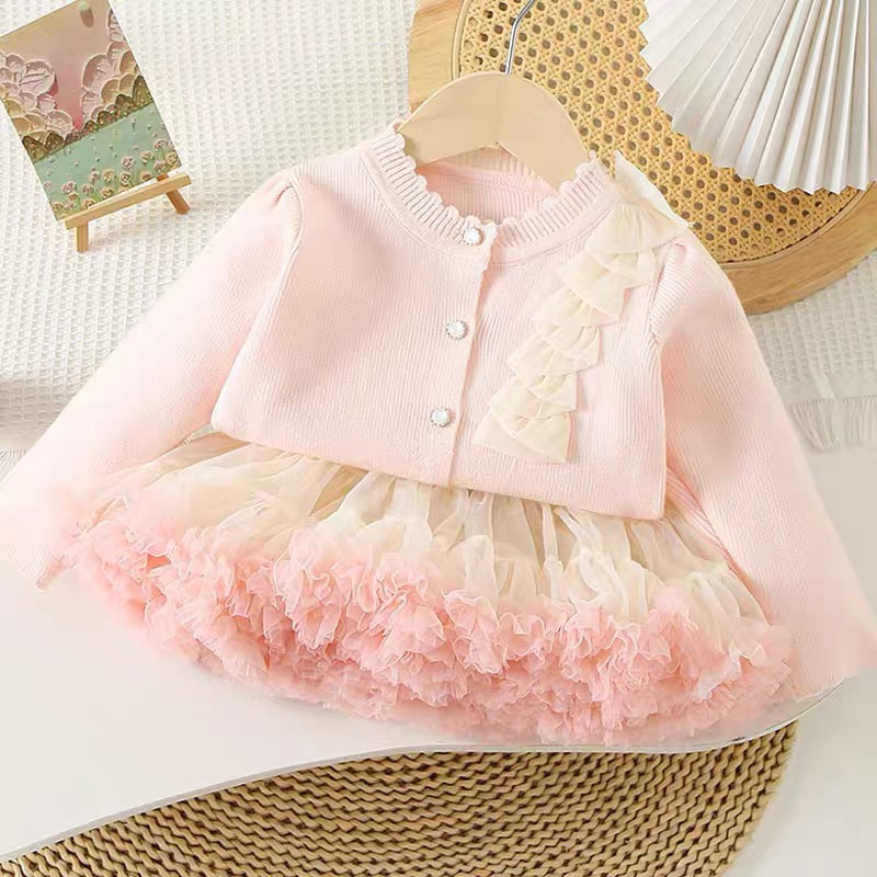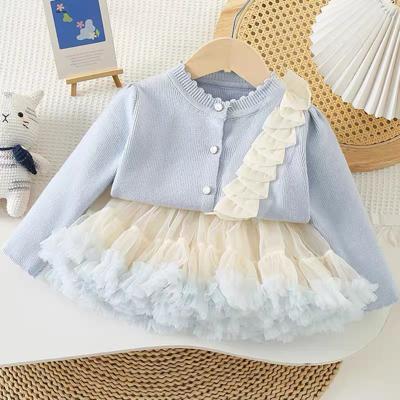 소녀 니트 톱 세트 2025 봄과 가을 새로운 아기 카디건 원피스 어린이 서양식 투피스 공주