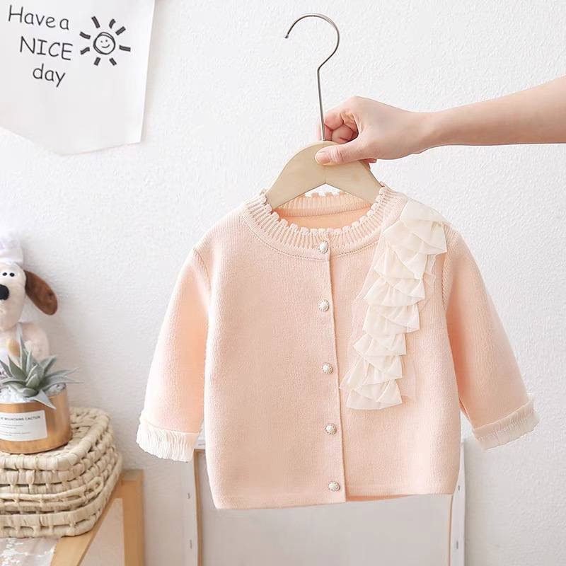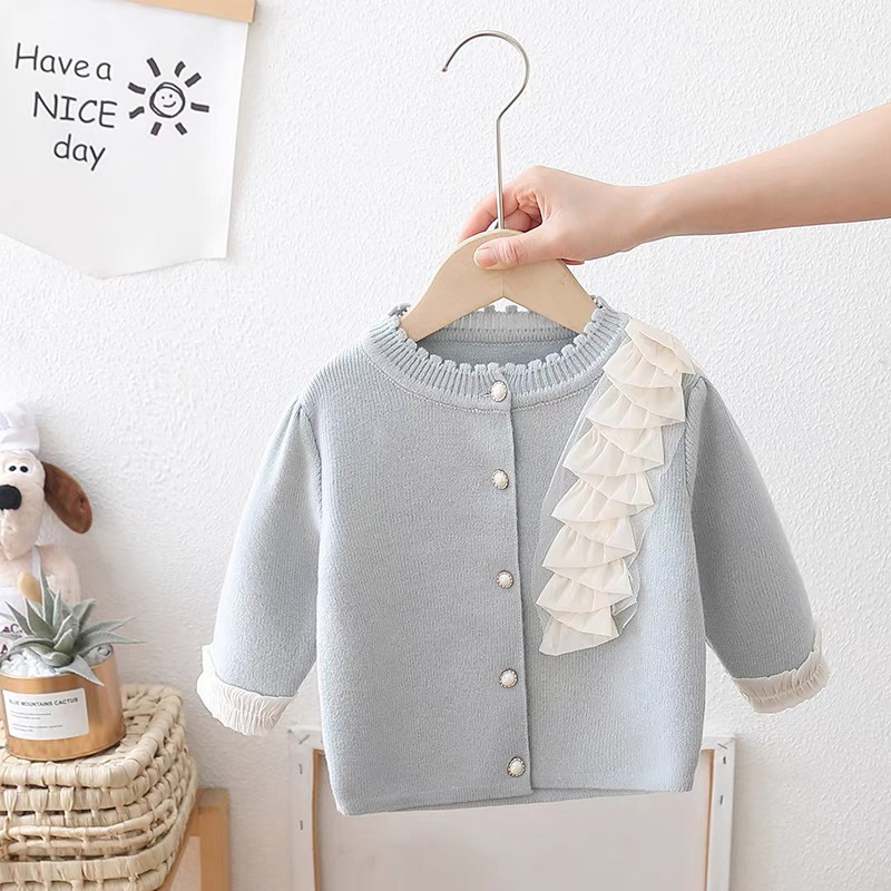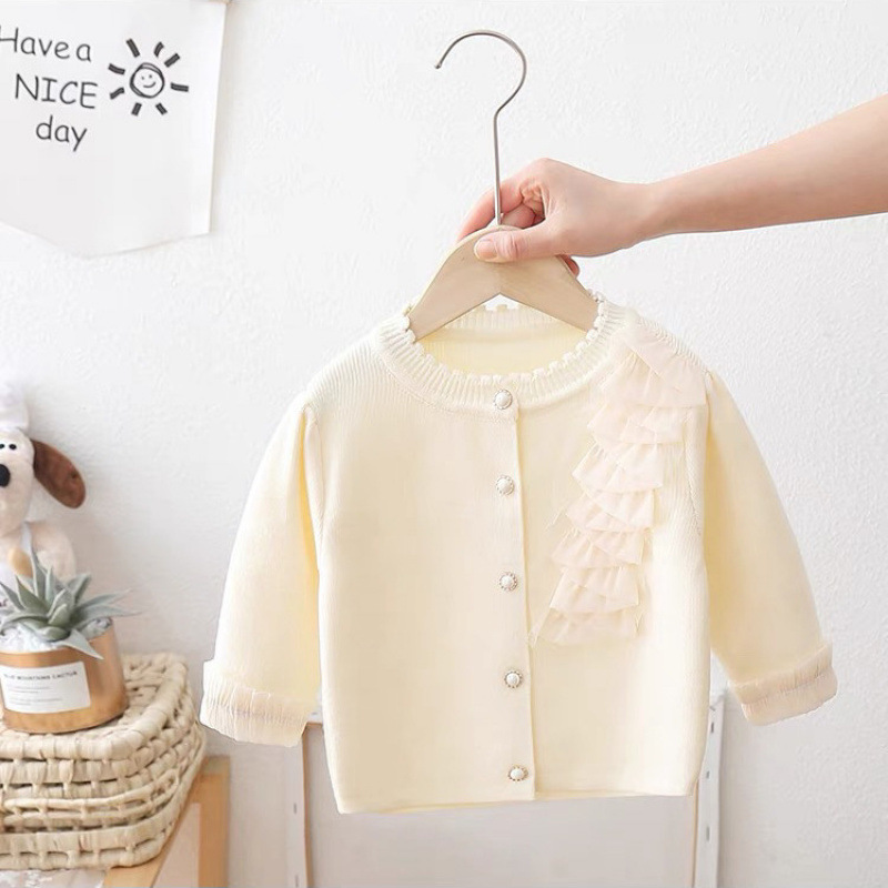 소녀 니트 톱 세트 2025 봄과 가을 새로운 아기 카디건 원피스 어린이 서양식 투피스 공주스토어 가기