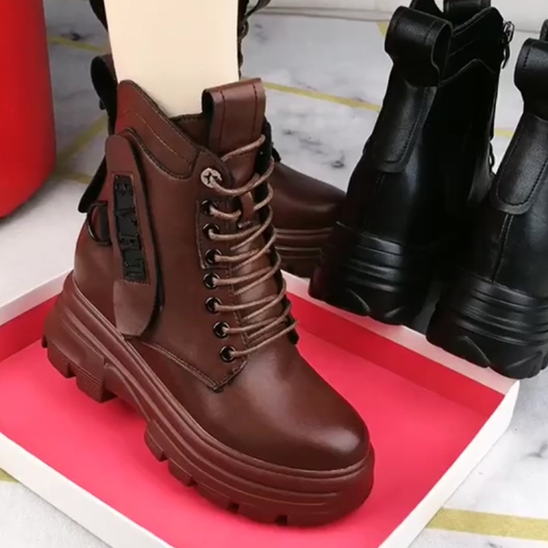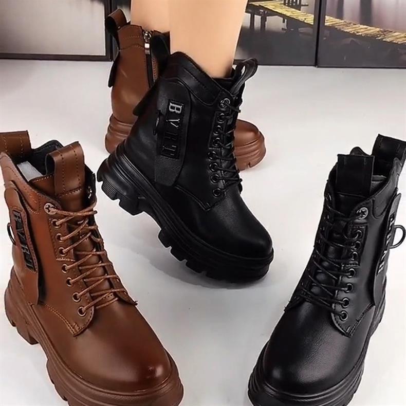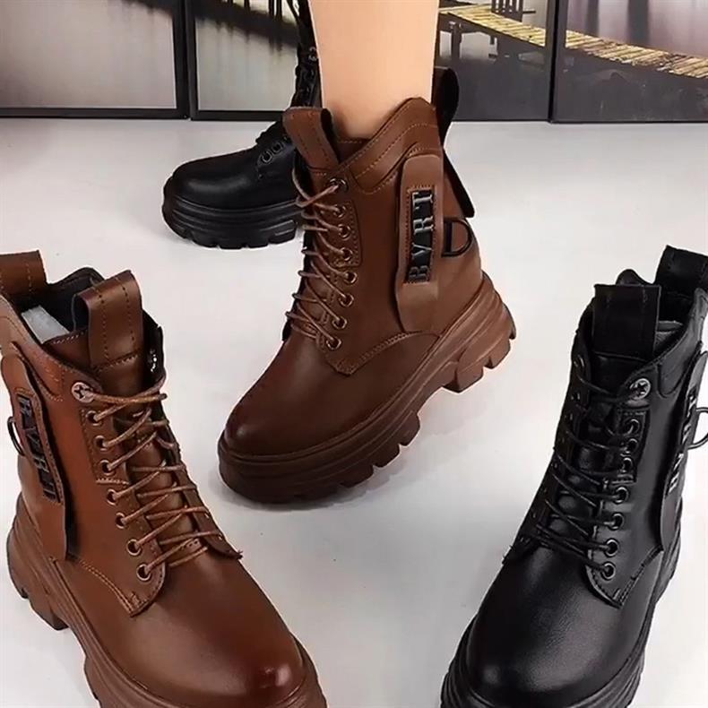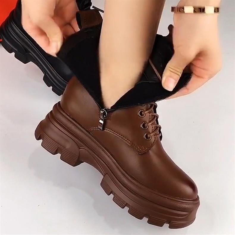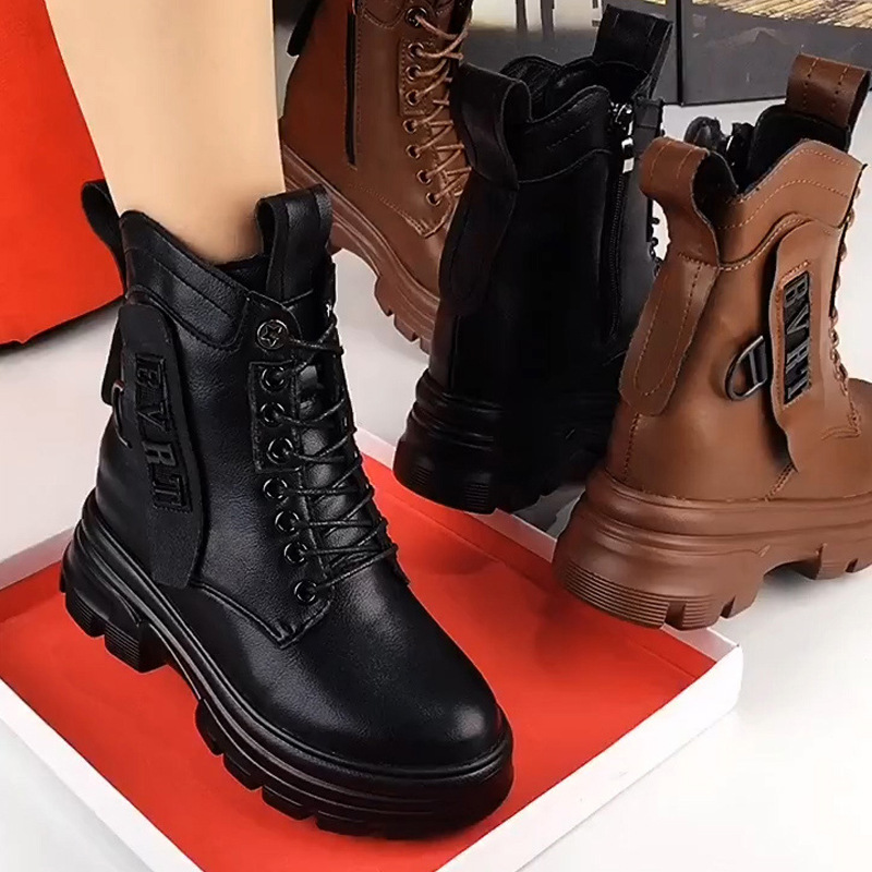 정품 가죽 마틴 부츠 여성 전체 카우보이 2025 새로운 겨울 기모 두꺼운 단독 여성용 짧은 부츠 하이힐 신발