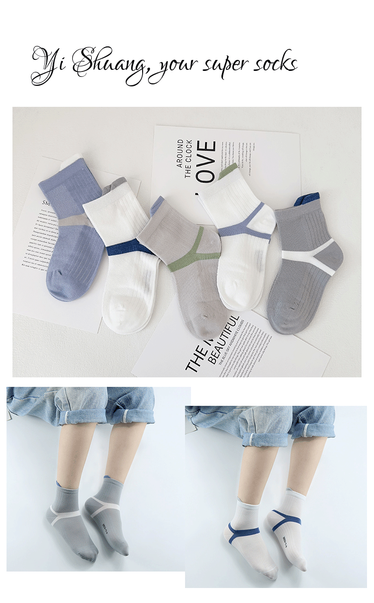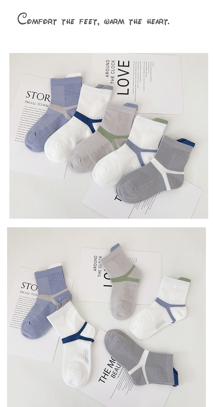 Yi 쌍 어린이 양말 여름 새로운 메쉬 통기성 귀 대비 짧은 양말 Combed Cotton Boys 스포츠 면 양말