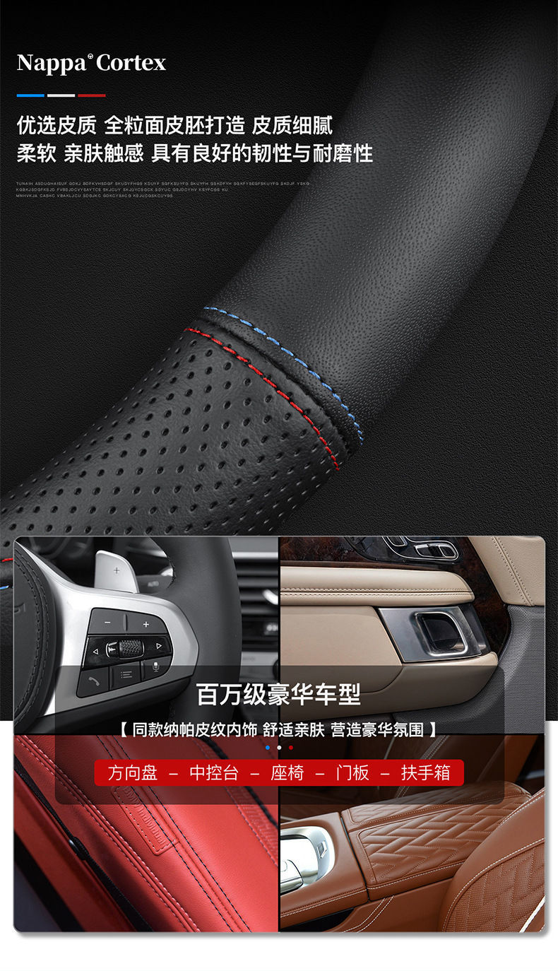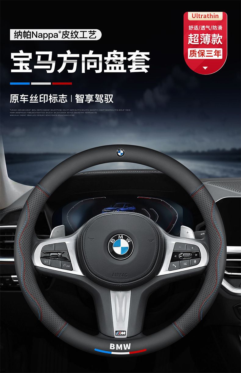 BMW 5 시리즈 스티어링 휠 커버 04-24 얇은 통기성 이음새가없는 나파 핸들 커버에 적합스토어 가기