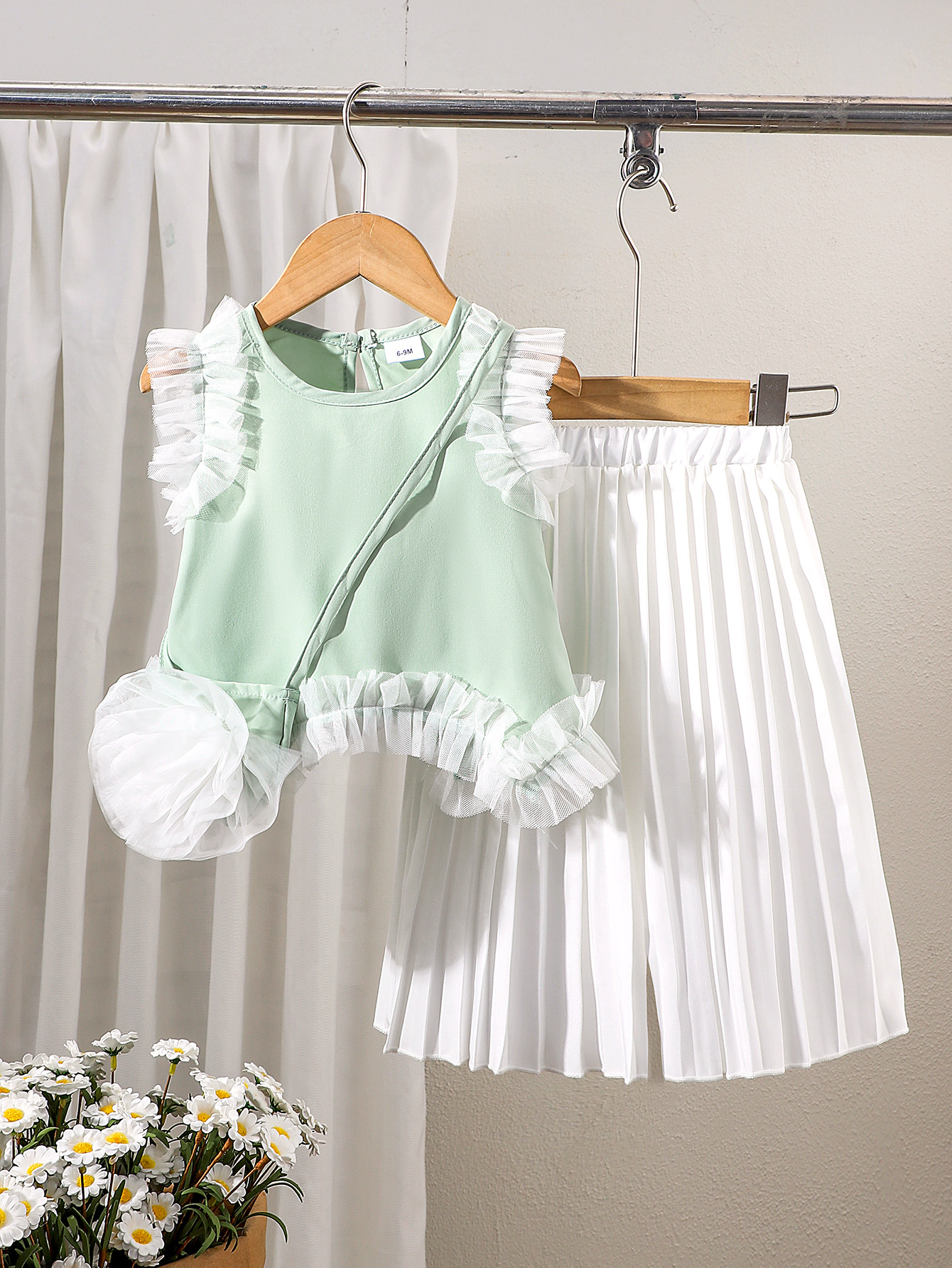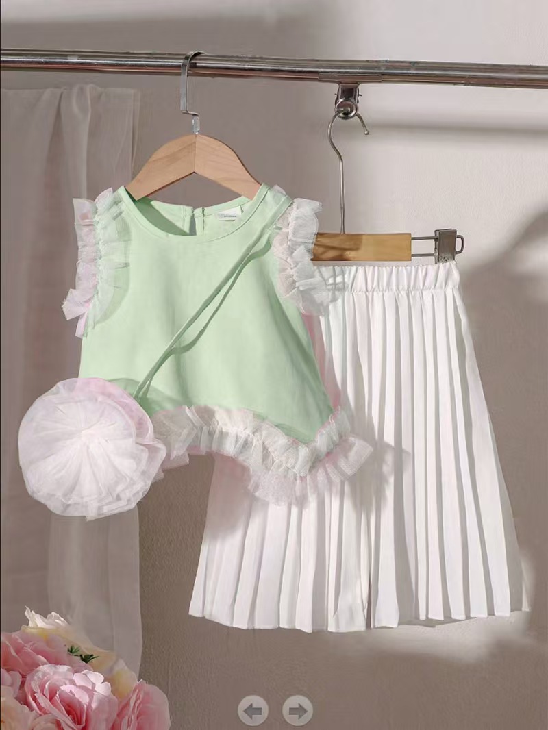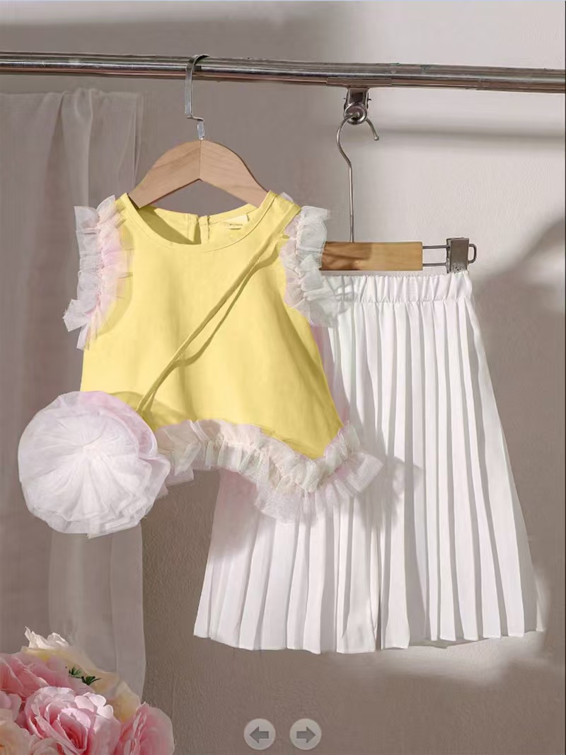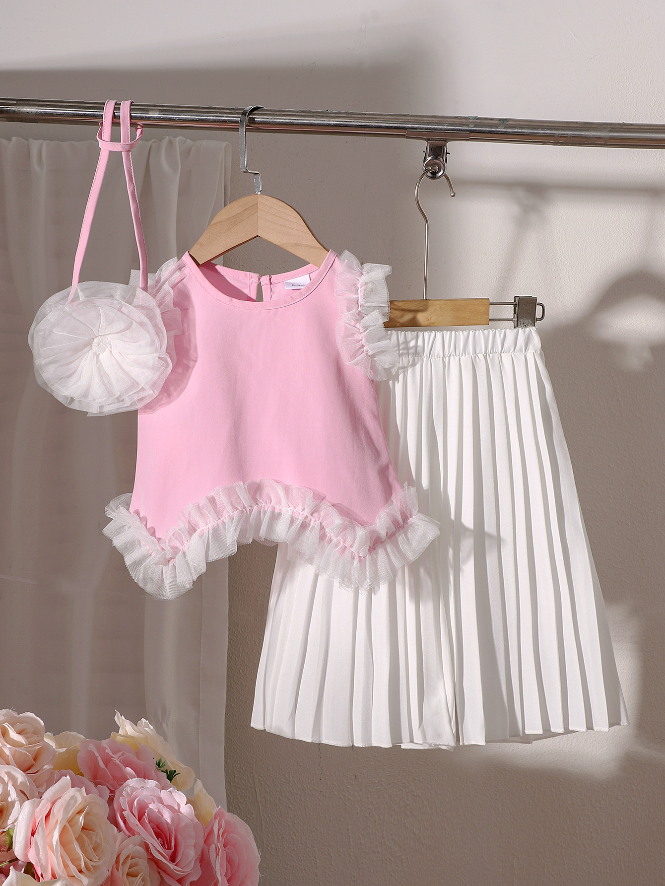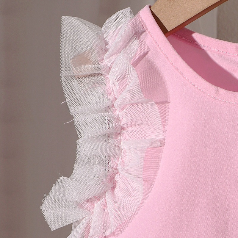 어린이 의류 아마존 국경 여름 소녀 핑크 조끼 탑 화이트 바지 세트