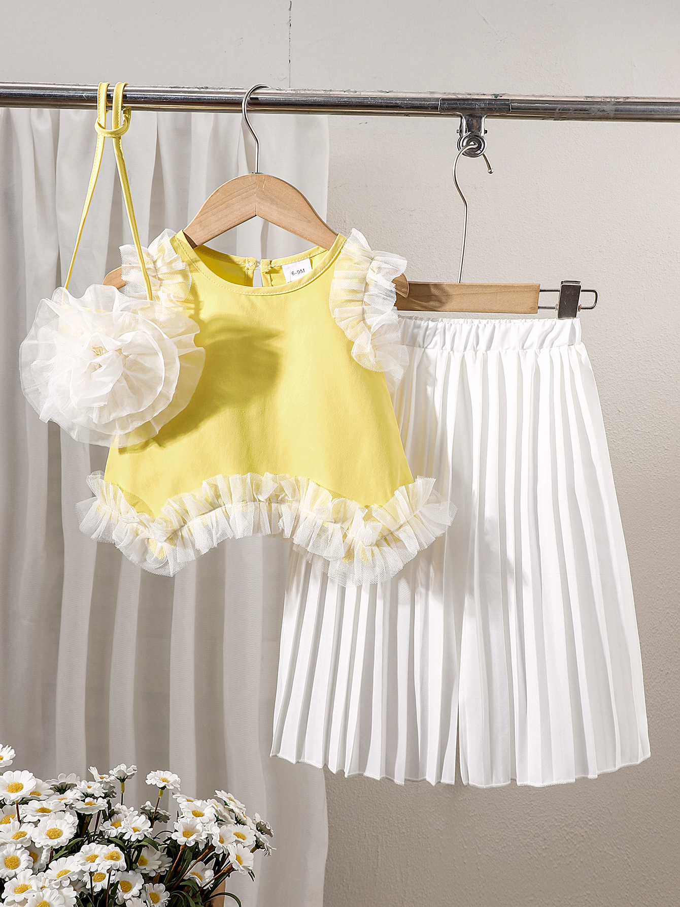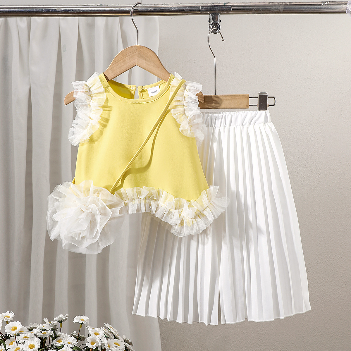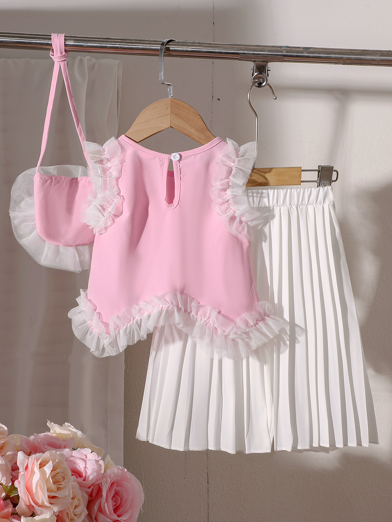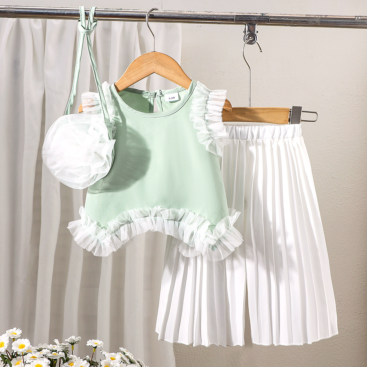 어린이 의류 아마존 국경 여름 소녀 핑크 조끼 탑 화이트 바지 세트