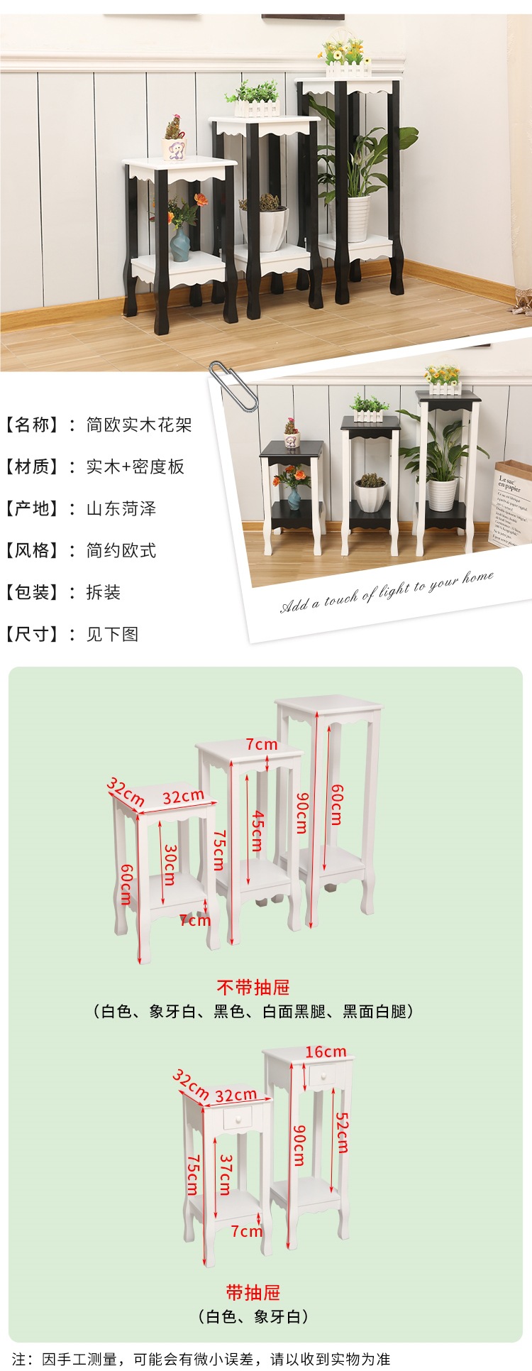 유럽식 솔리드 우드 플라워 랙 화이트 간단한 단일 공간 절약 랙 플로어 스탠딩 거실 꽃 랙 Chandelia 그린 로즈 실내 나무스토어 가기
