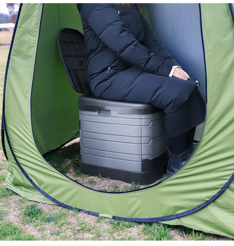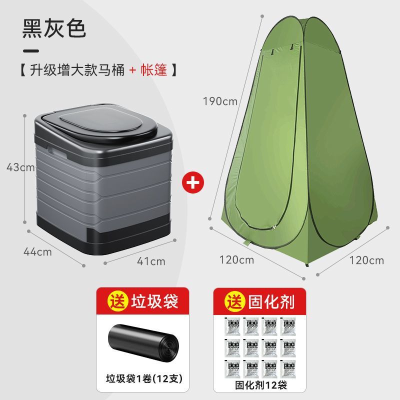 • 업그레이드된 대형 검정색 및 회색 변기(액세서리 포함) + 텐트