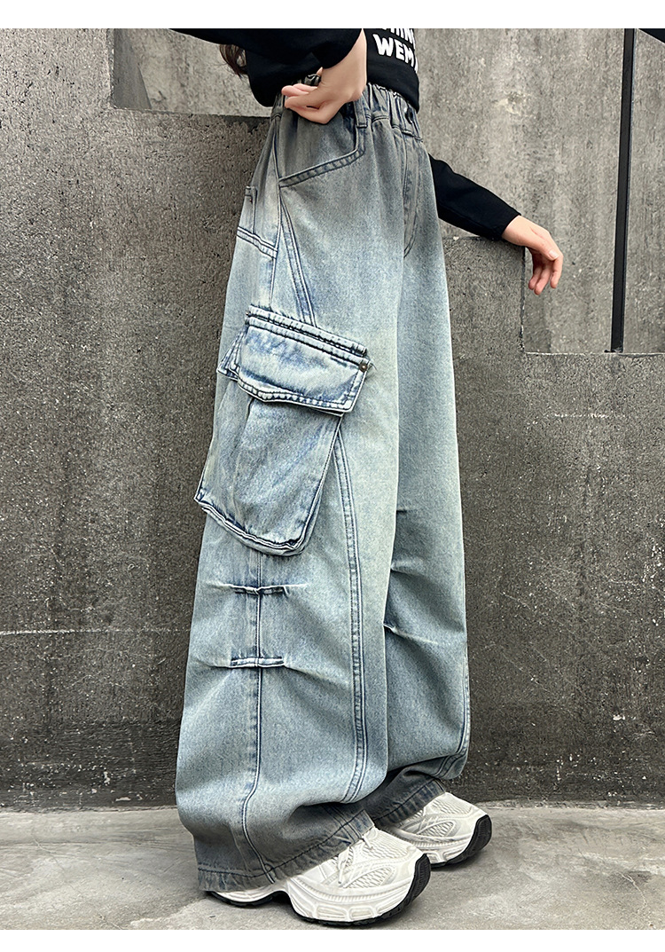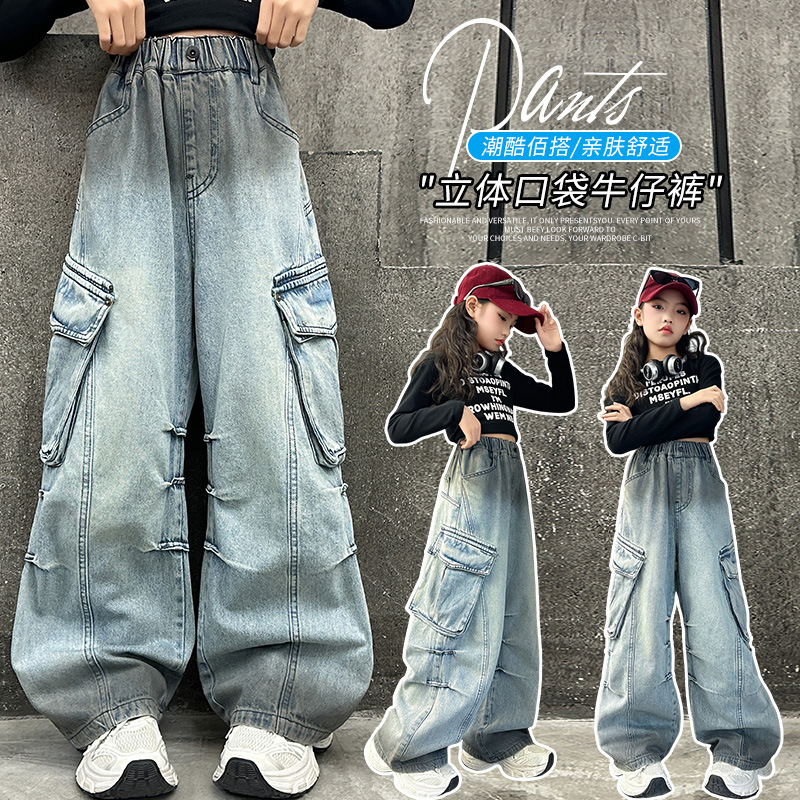여자 데님 바지 봄 새 한국판 대형 어린이 주머니 입체 청바지 대외 무역 도매 2025스토어 가기