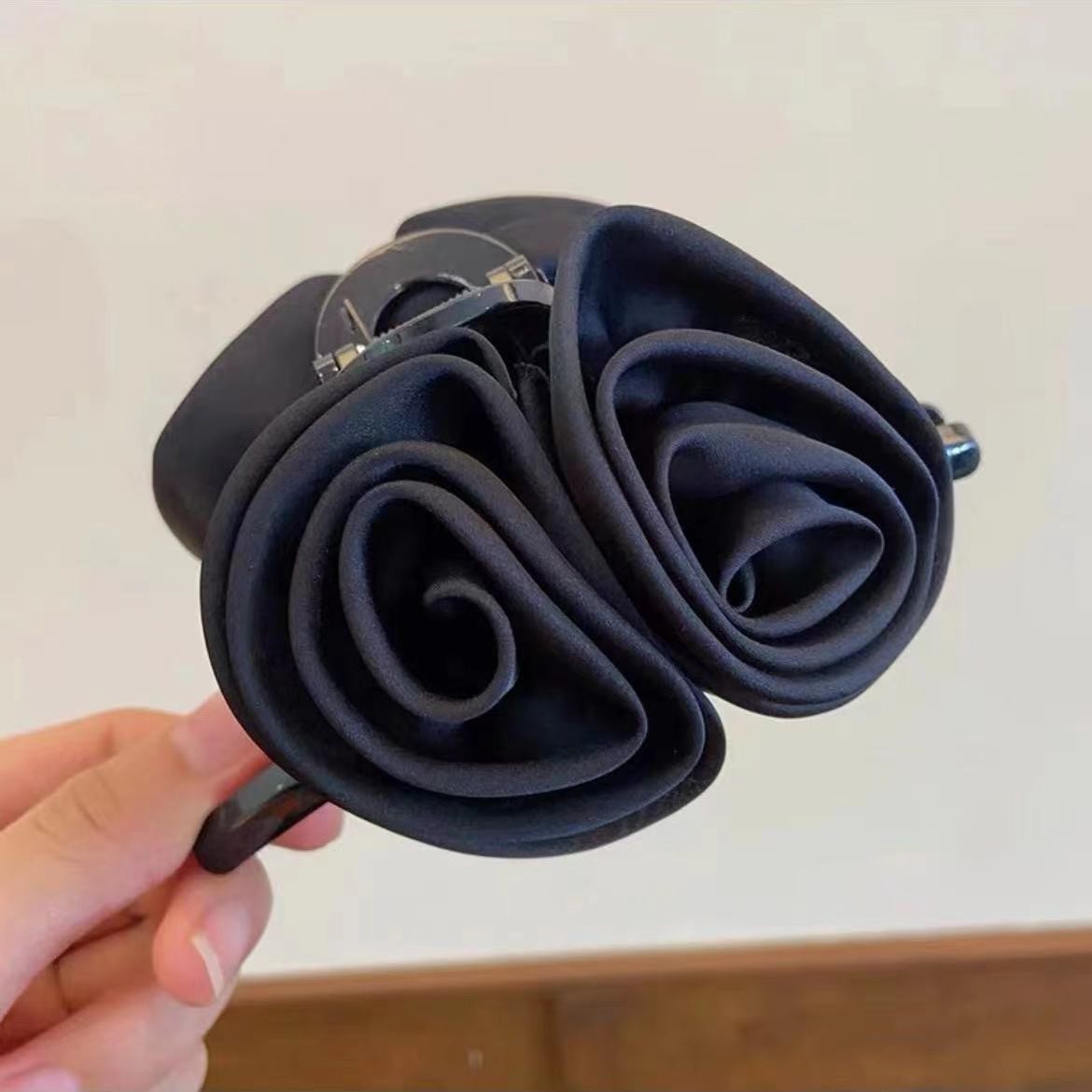 고급 새틴 로즈 플라워 그랩 클립 우아한 헤어핀 큰 우아한 머리 머리 상어 새로운 여성 헤어 액세서리