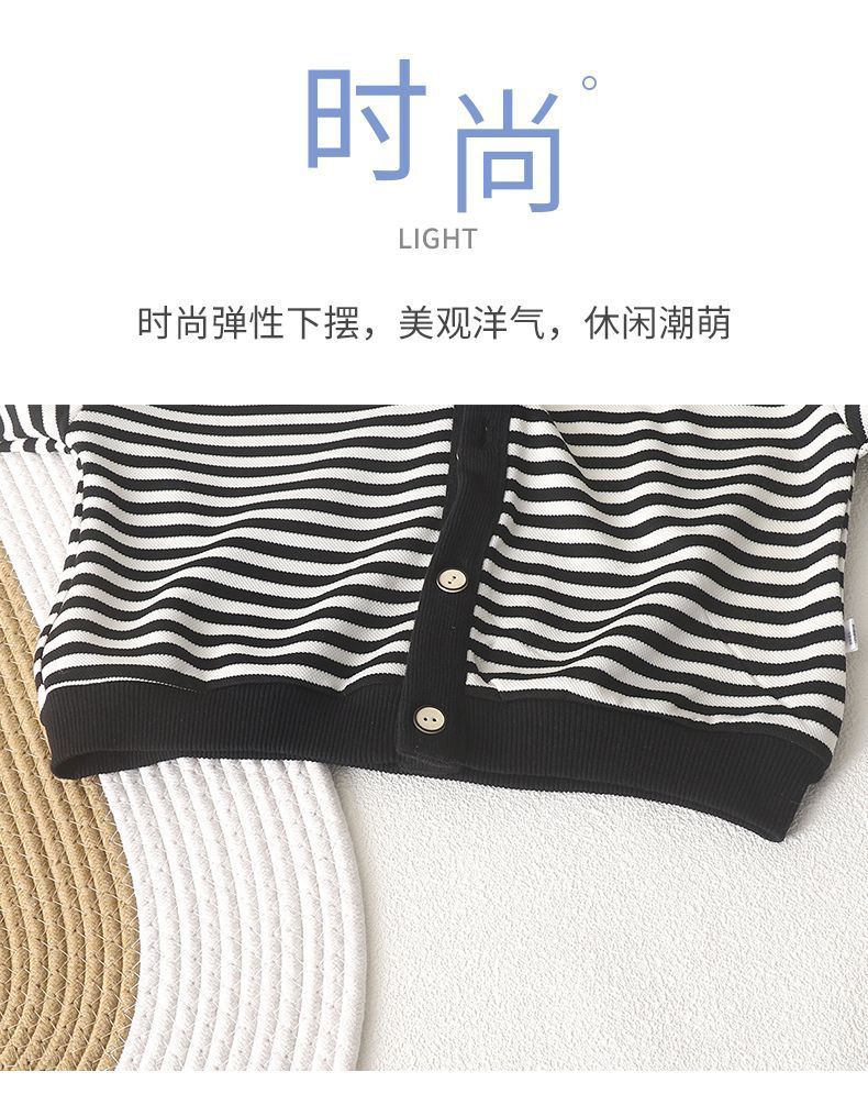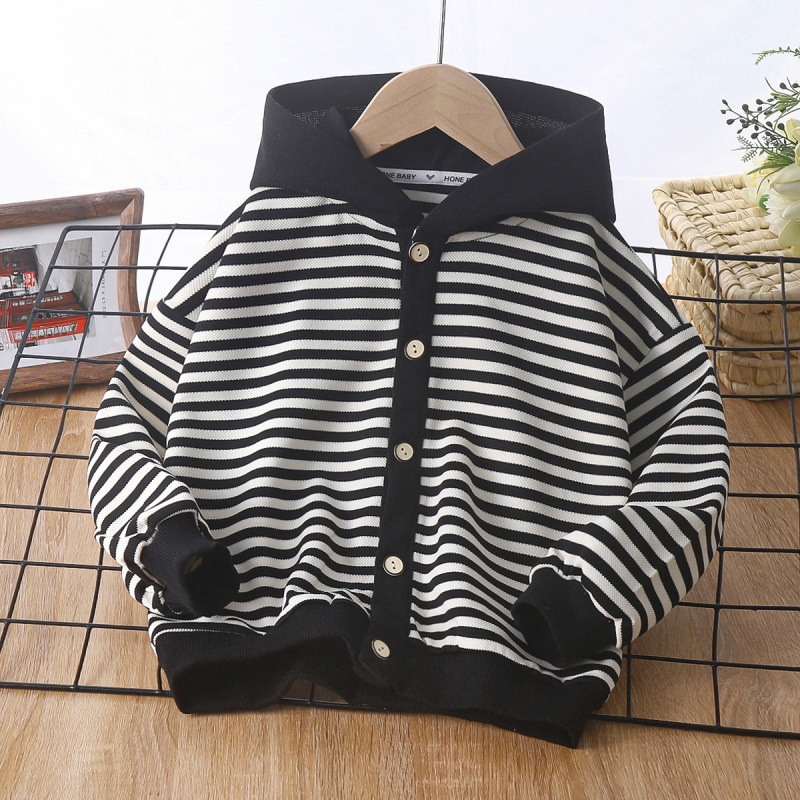 2025 봄 새 소년 소녀 후드 카디건 재킷 서양식 줄무늬 니트웨어 캐주얼 올 매치 트렌디 아동복스토어 가기