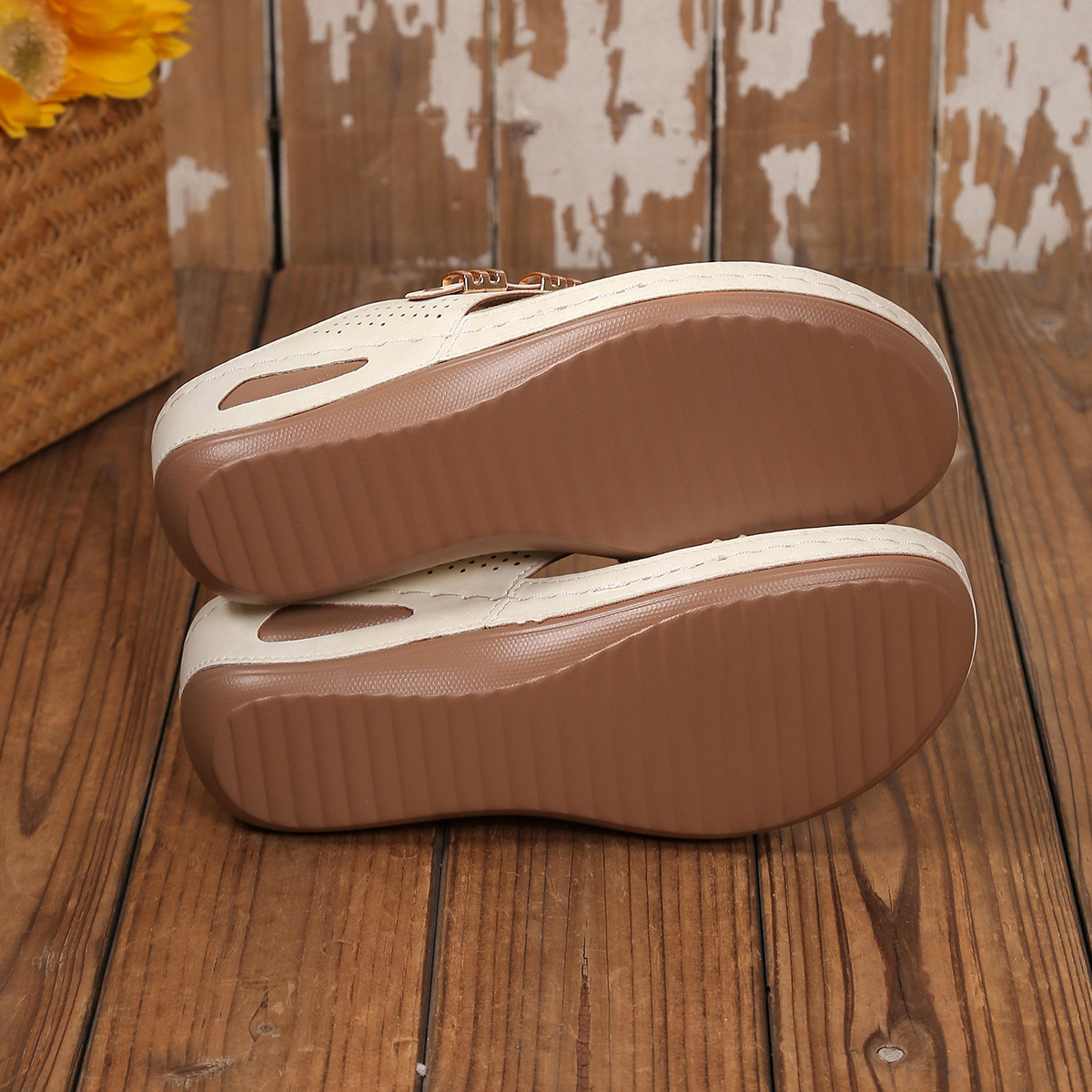 2025 새로운 대외 무역 플러스 사이즈 슬리퍼 여성용 쐐기 발가락 금속 버클 장식 자동차 스티칭 헤링본 슬리퍼