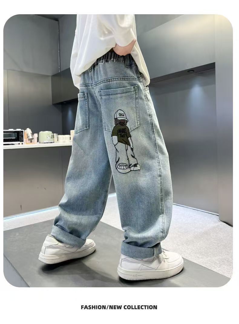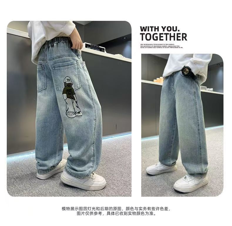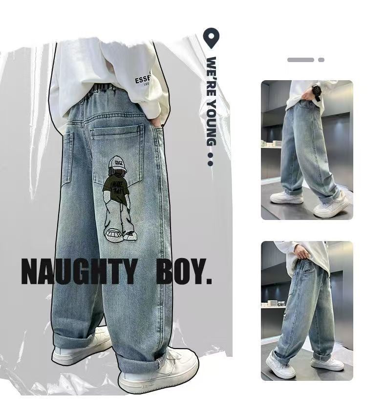 소년 청바지 봄과 가을 2025 새로운 어린이 바지 서양식 한국 스타일 봄 소년 캐주얼 바지