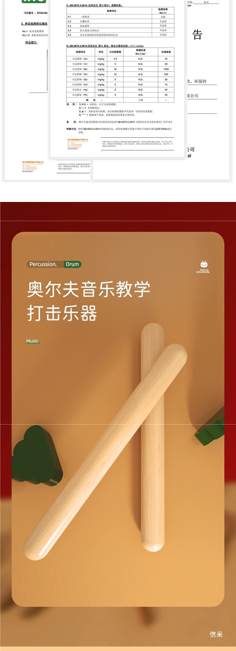 오르프 악기 울리는 스틱 너도밤 리듬 스틱 퍼커션 악기 유치원 음악 교육 링 스틱 링 스틱