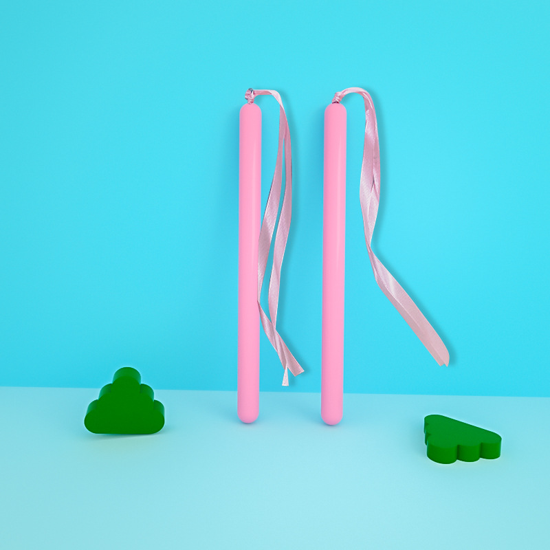 • 리본과 스틱이 달린 핑크색 한 쌍