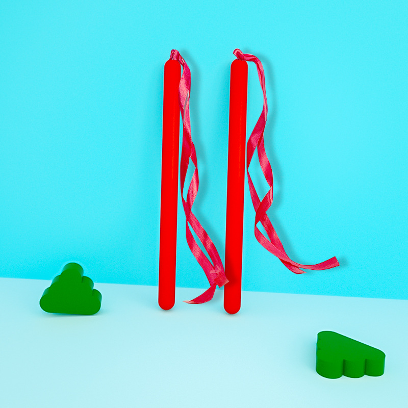 • 빨간 리본과 컬러풀한 리듬 스틱(쌍)