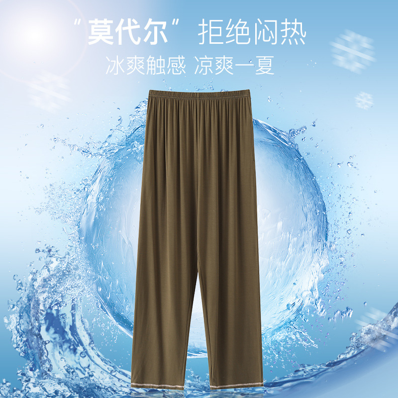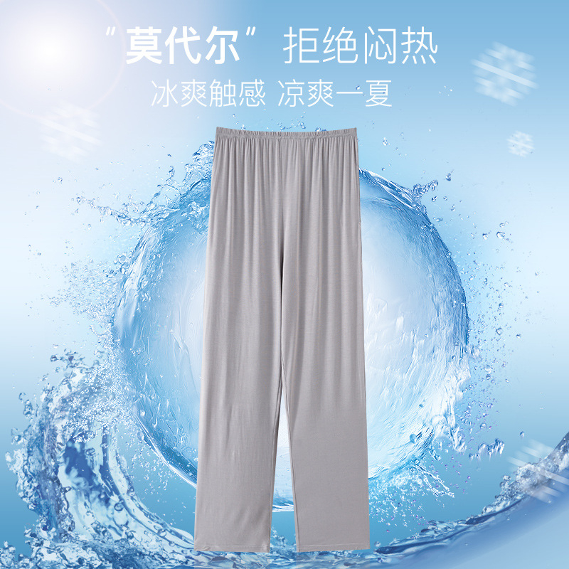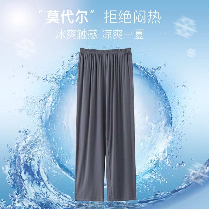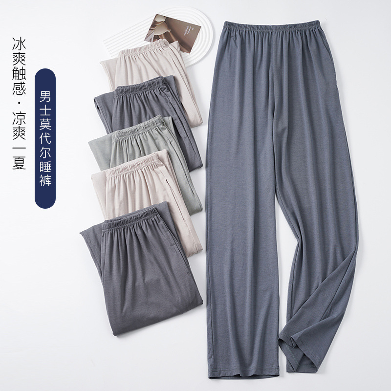 파자마 바지 남성용 모달 바지 여름 홈 바지 얇은 느슨한 얼음 실크 시원한 에어컨 홈 바지스토어 가기