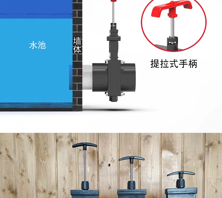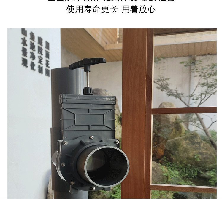 풀 플레이트 밸브, 슬라이드 플레이트 밸브, 물고기 연못 필터, 자동 블로우 다운, 연장 된 304 스테인레스 스틸 막대, 50/75 파이프 당김 빈, 특수 파이프스토어 가기