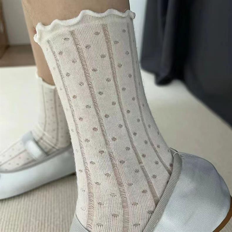 메쉬 양말 여성용 미드 튜브 양말 순수 코튼 여름 얇은 체리 베어 레이스 작은 가죽 신발 포장 미끄럼 방지 양말