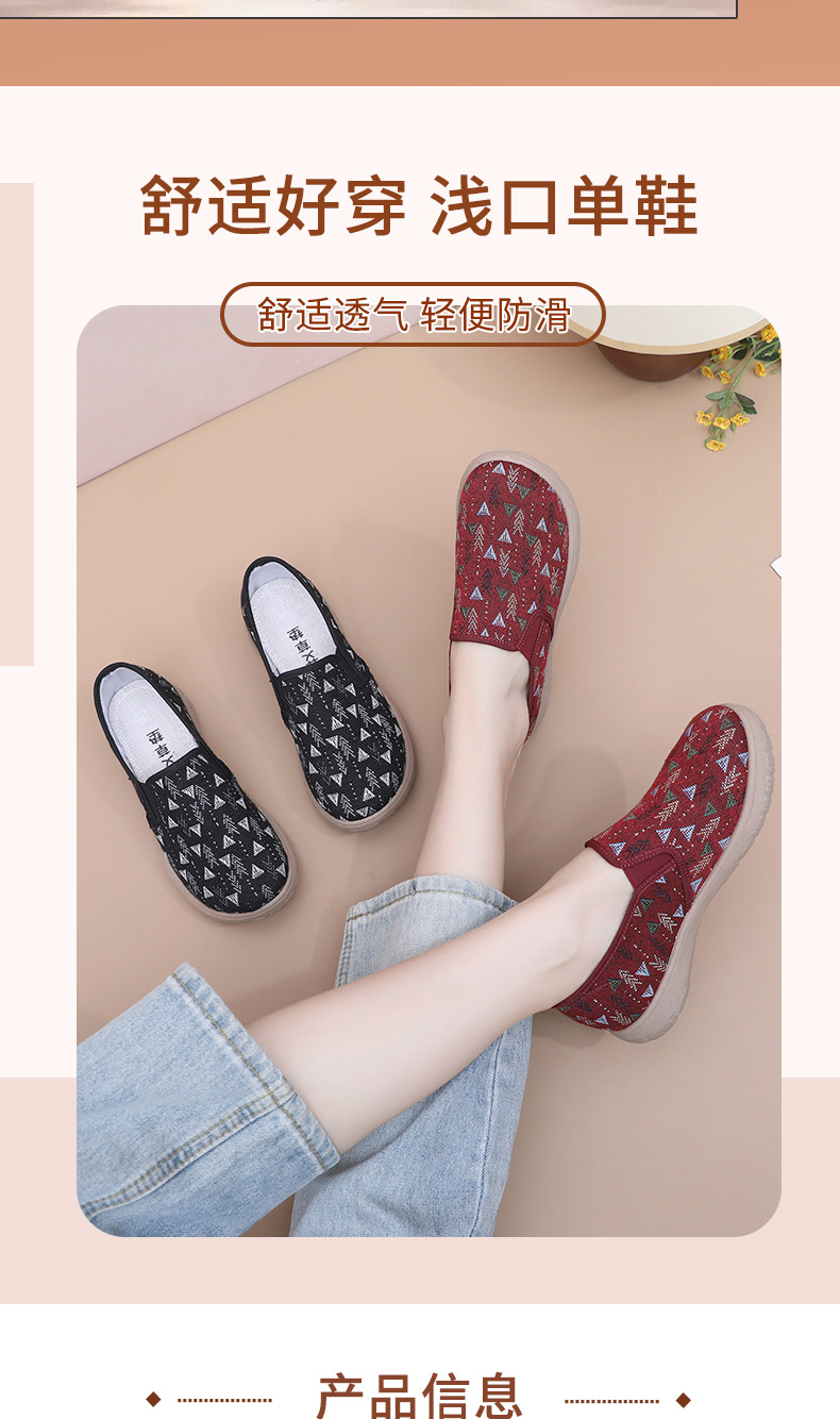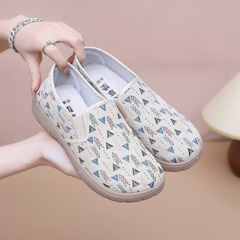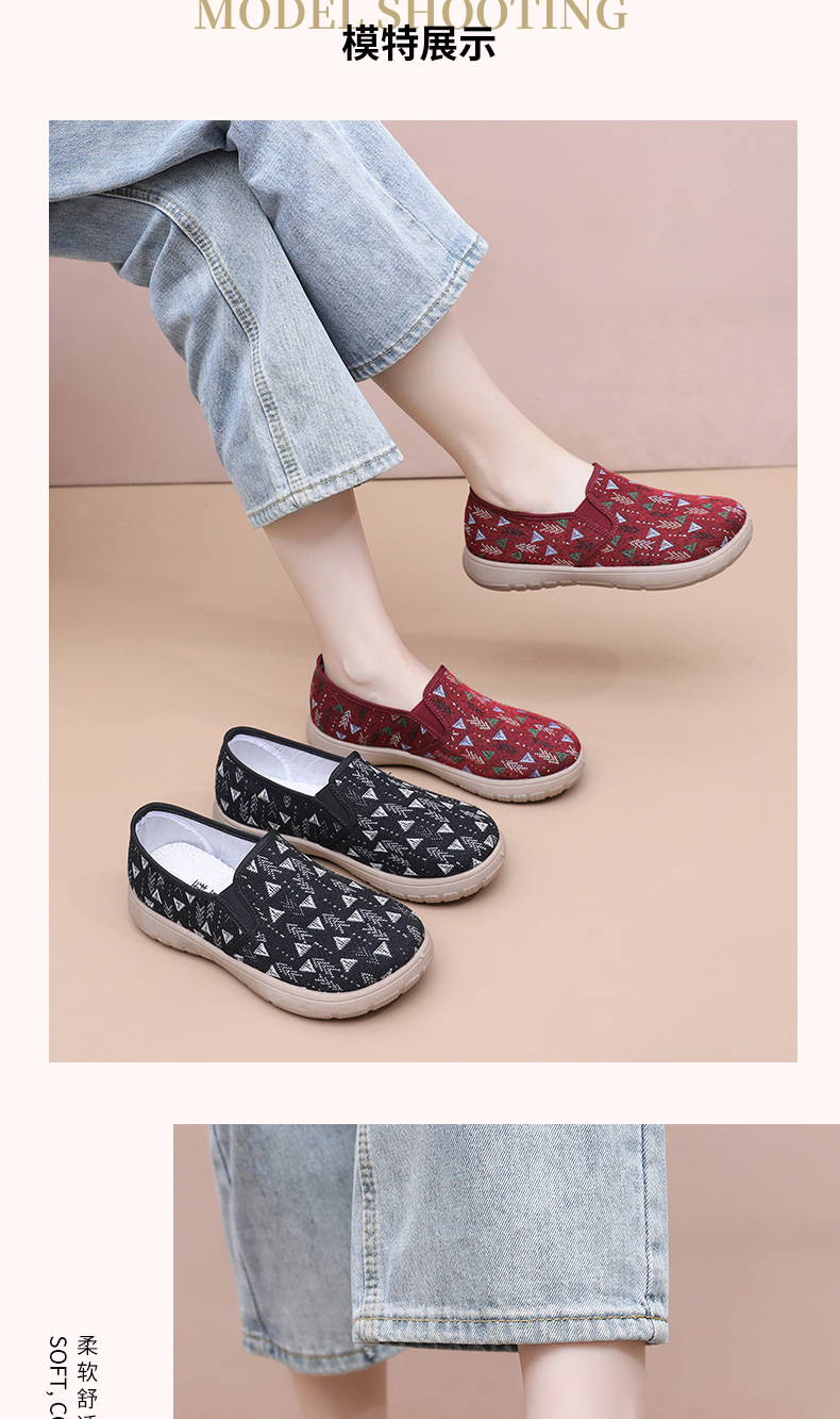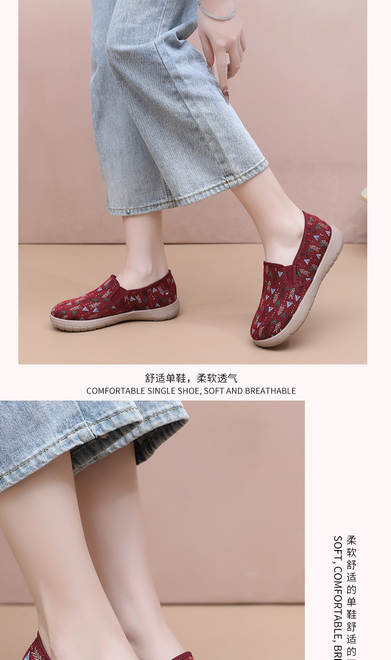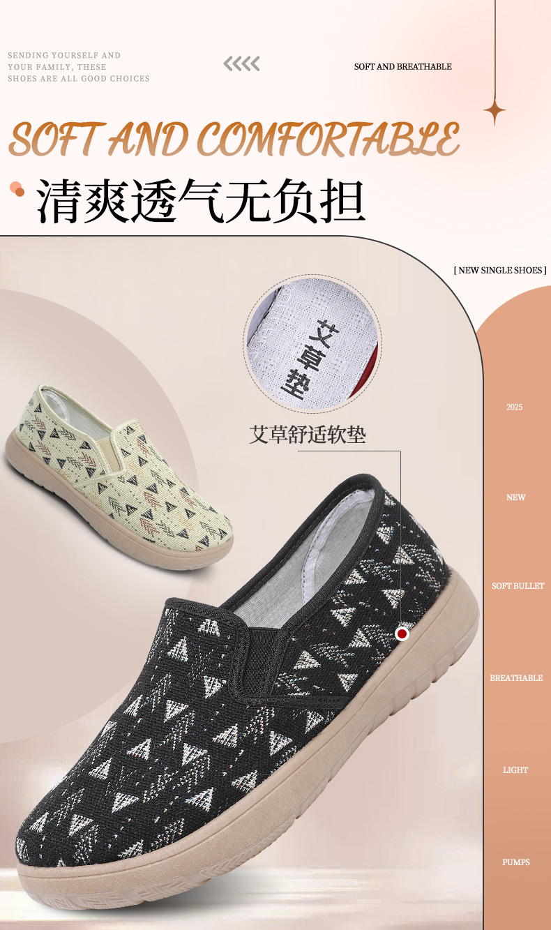 2025 봄 천 신발 미끄럼 방지 어머니 신발 통기성 부드러운 바닥 자수 중년 및 노인 어머니 신발 캐주얼 편안한 싱글 레이어 신발스토어 가기