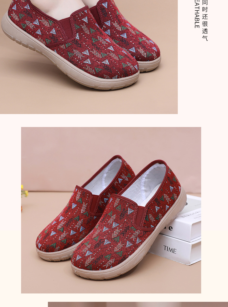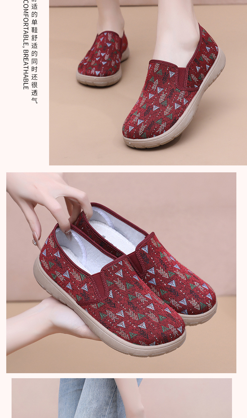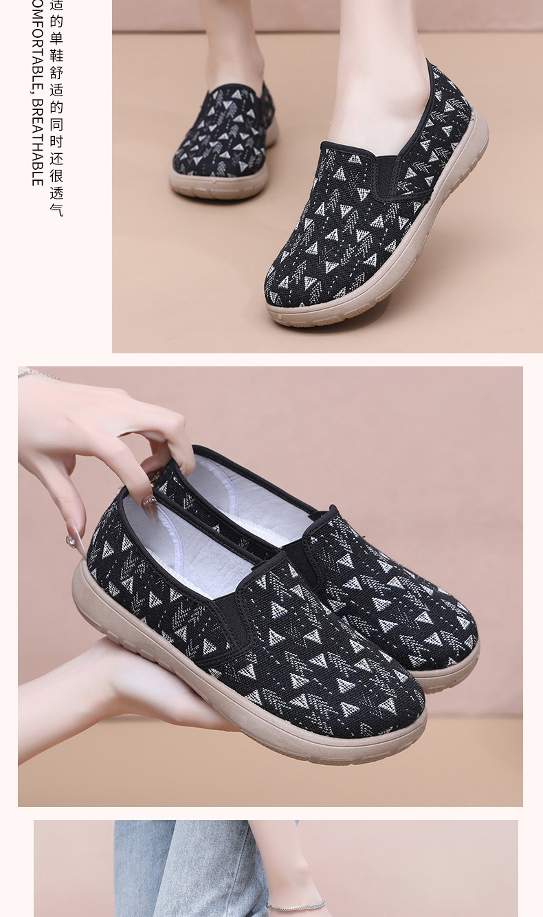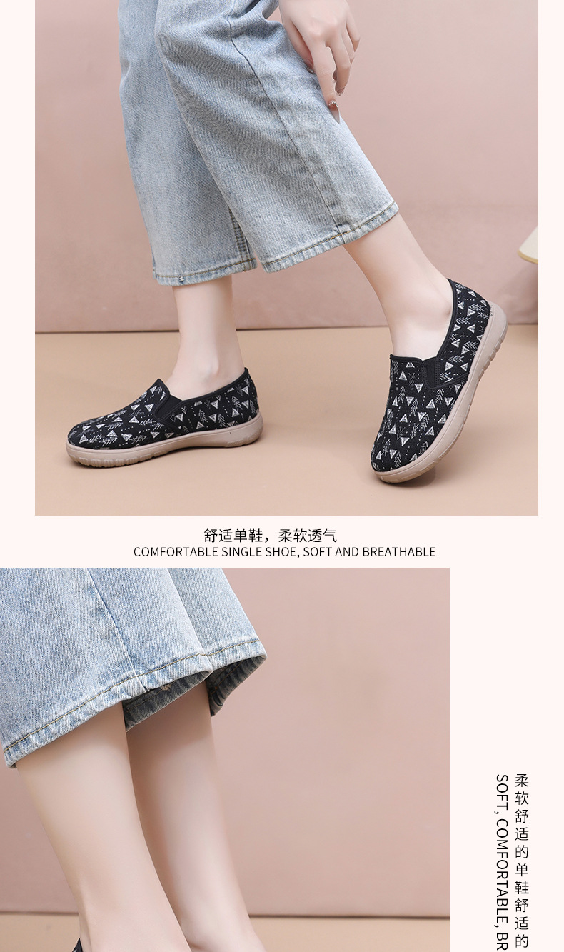 2025 봄 천 신발 미끄럼 방지 어머니 신발 통기성 부드러운 바닥 자수 중년 및 노인 어머니 신발 캐주얼 편안한 싱글 레이어 신발스토어 가기