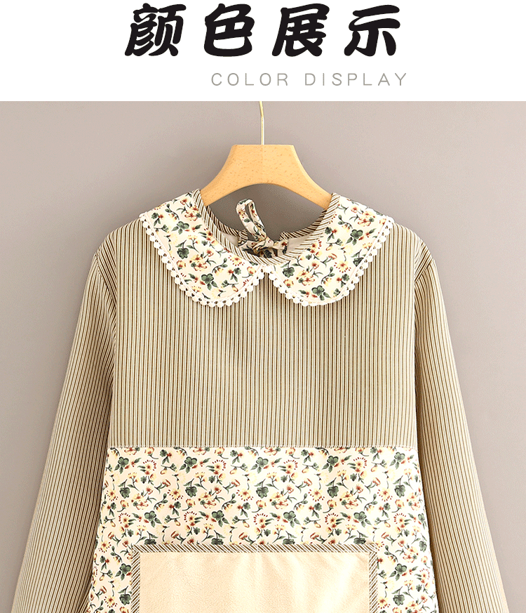 • 긴팔 캔버스 라운드넥 세로줄무늬 손주머니(녹색) + 앞치마✓