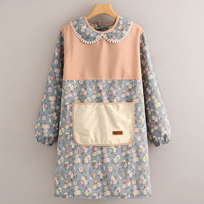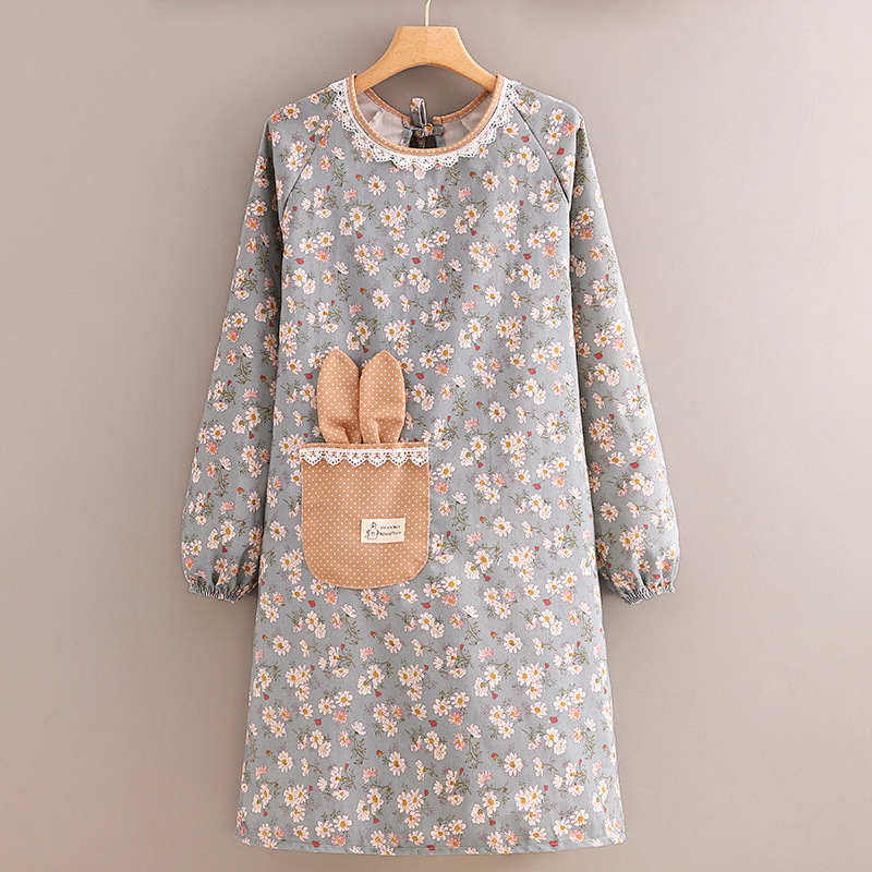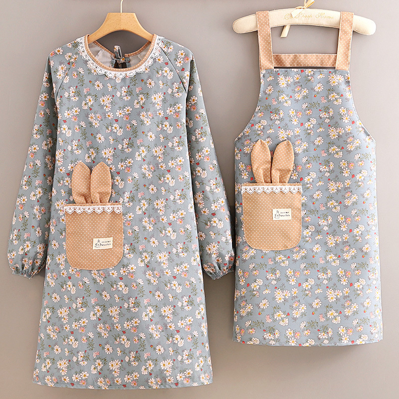 • 캔버스 꽃무늬 긴팔 토끼귀(블루) + 앞치마✓