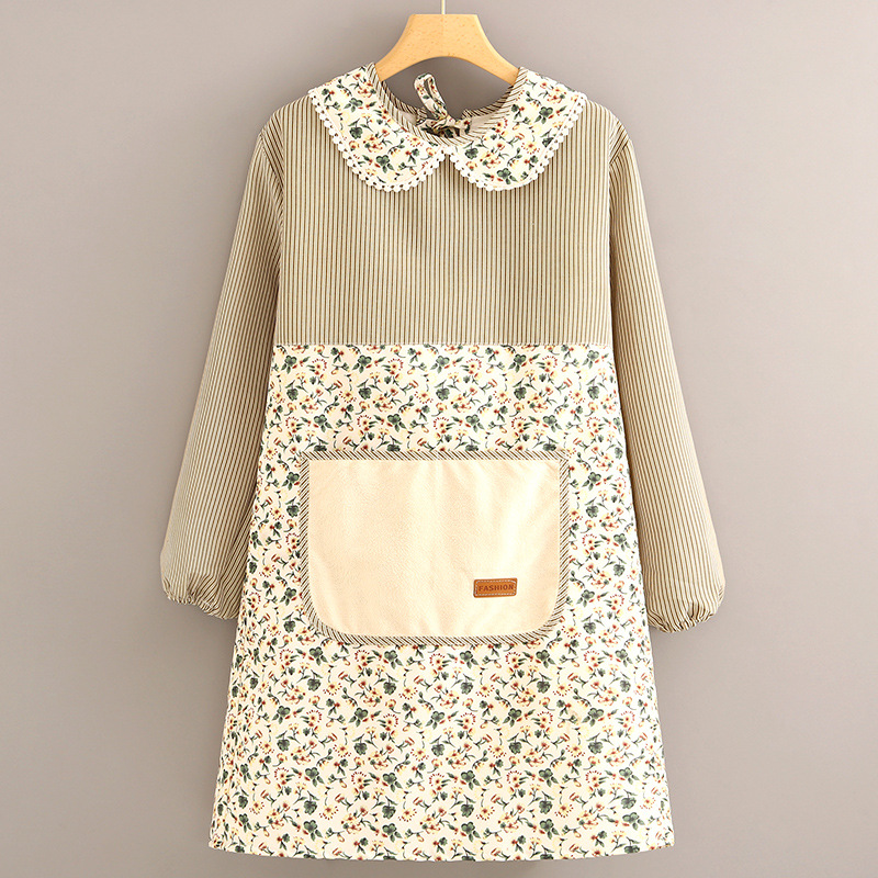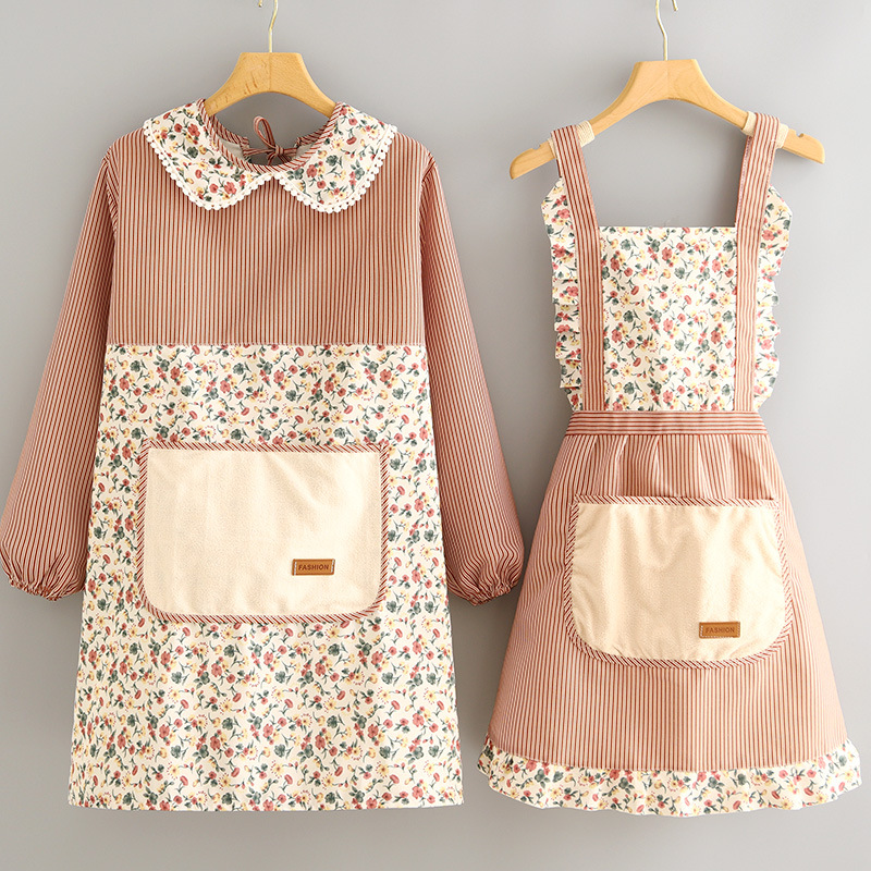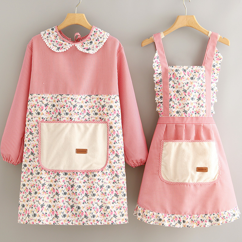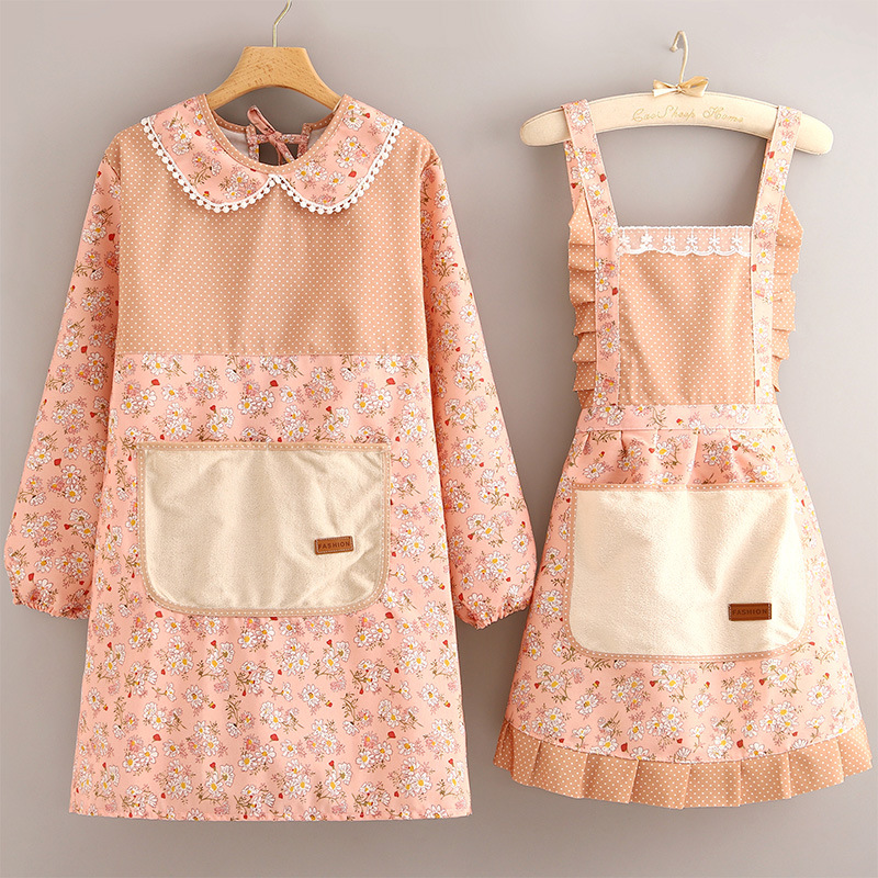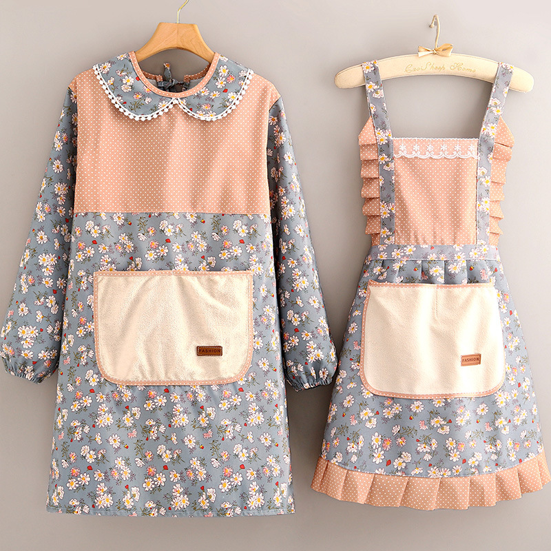 패션 캔버스 내마모성 신선한 앞치마 주방 가정용 긴팔 작업복 요리 허리 오염 방지 작업자 링싱