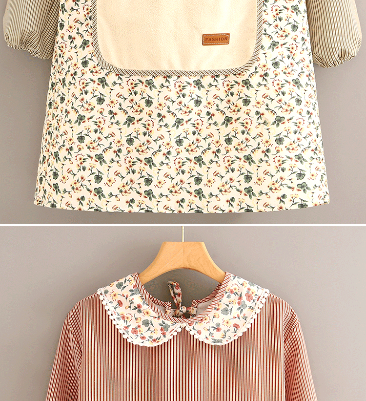 • 긴팔 캔버스 스몰 라운드넥 세로줄무늬 손주머니(커피) + 앞치마✓