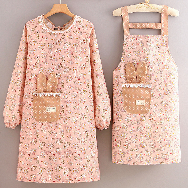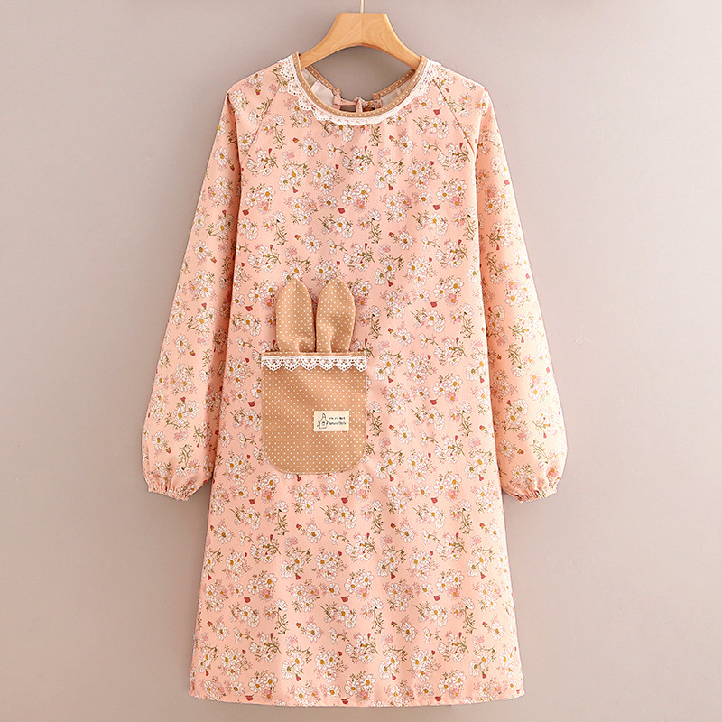 • 캔버스 꽃무늬 긴팔 토끼귀(핑크) + 앞치마✓