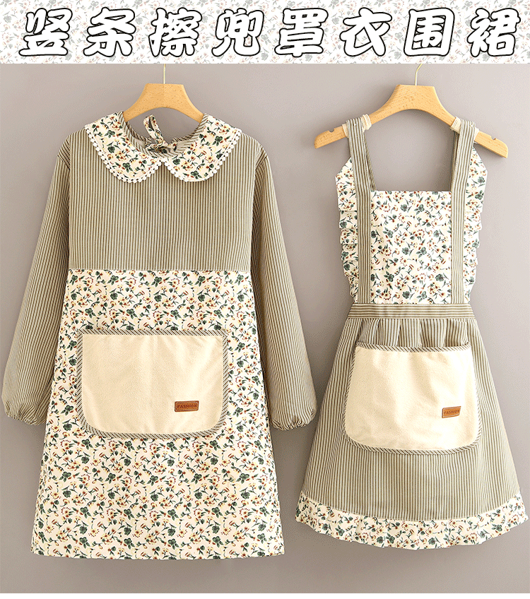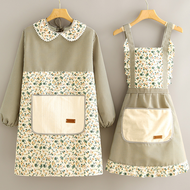 패션 캔버스 내마모성 신선한 앞치마 주방 가정용 긴팔 작업복 요리 허리 오염 방지 작업자 링싱스토어 가기