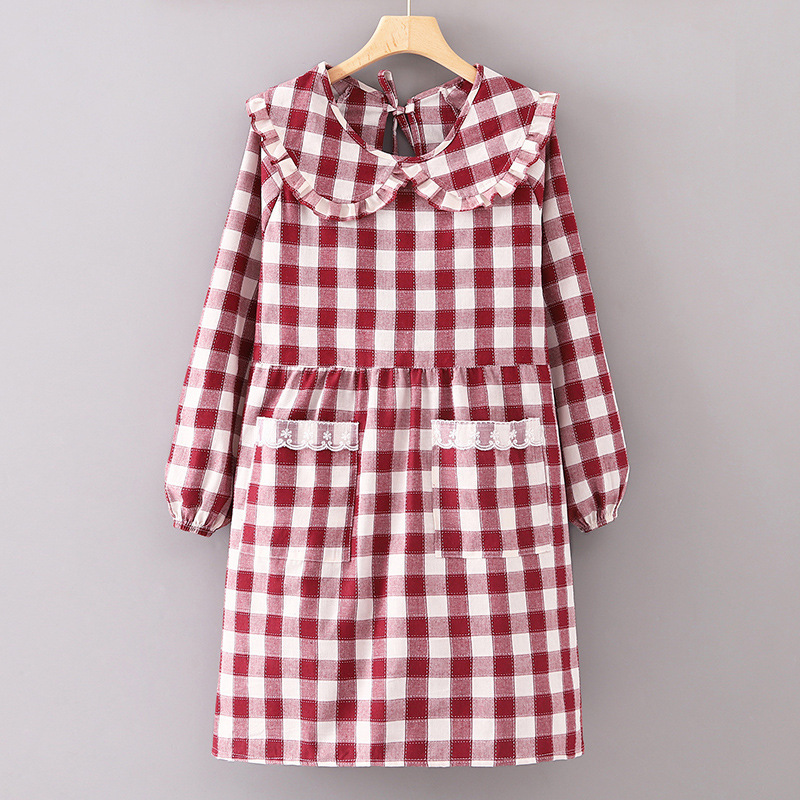 • 긴팔 체크무늬 공주원피스(버건디)✓
