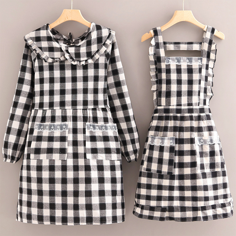 • 긴팔 체크무늬 공주원피스(블랙) + 멜빵 ✓