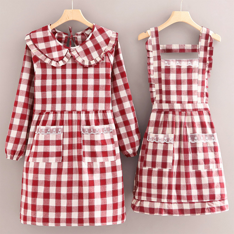 • 긴팔 체크무늬 공주원피스(버건디) + 멜빵✓