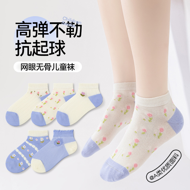 [뼈없는 안티 필링] 어린이 양말 여름 얇은 메쉬 큰 어린이 소녀 학생 가을과 겨울 면화 양말