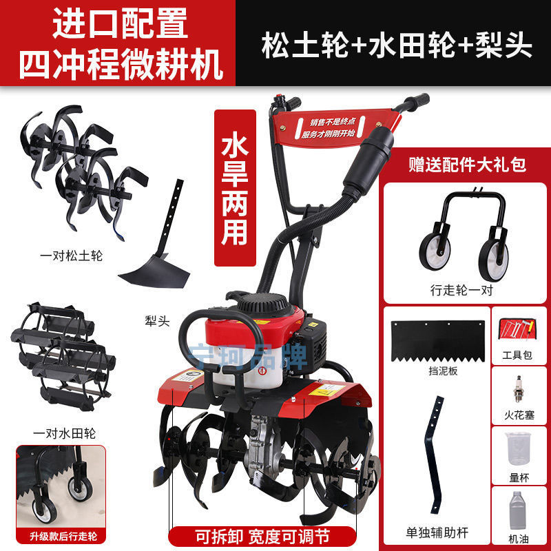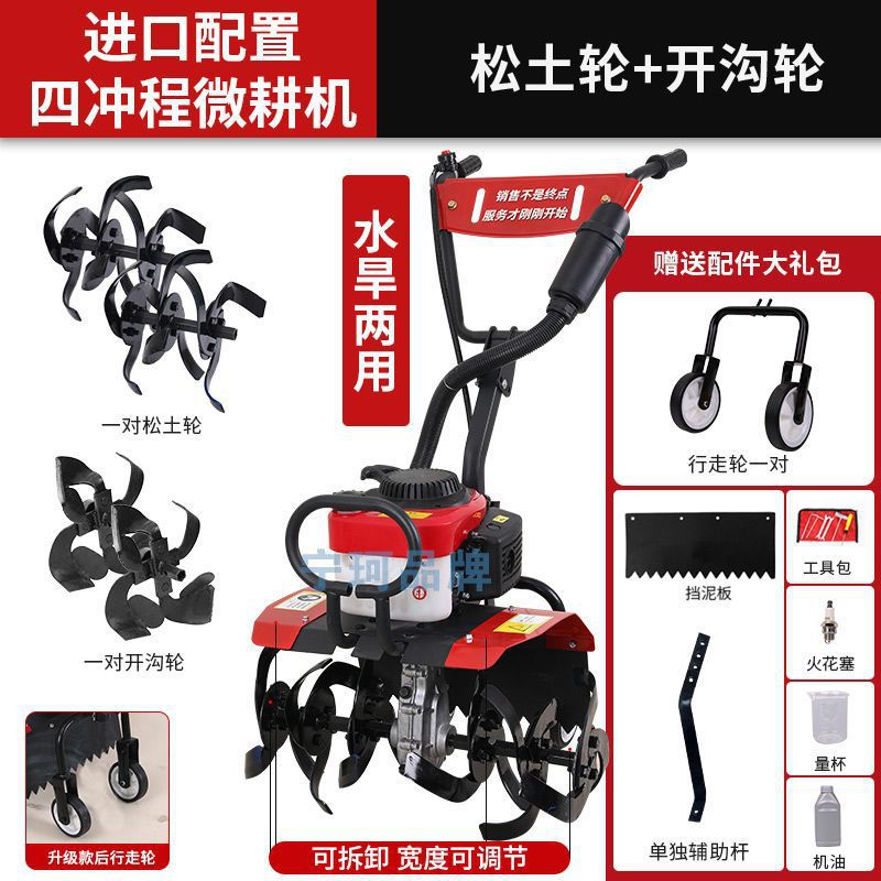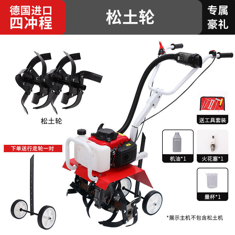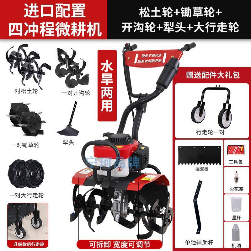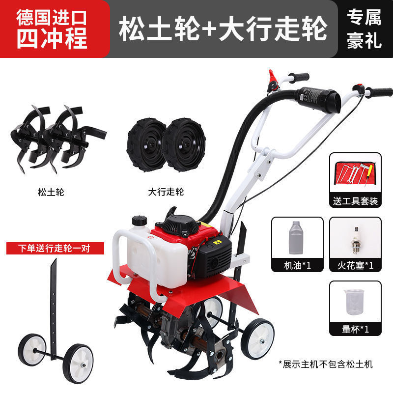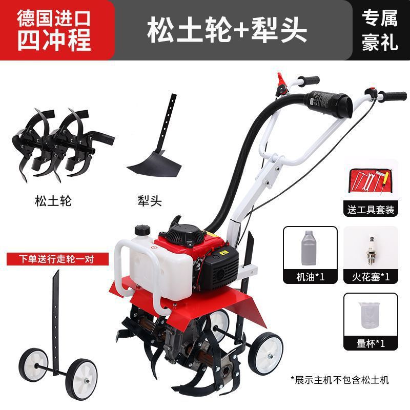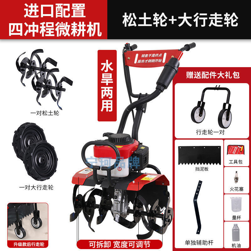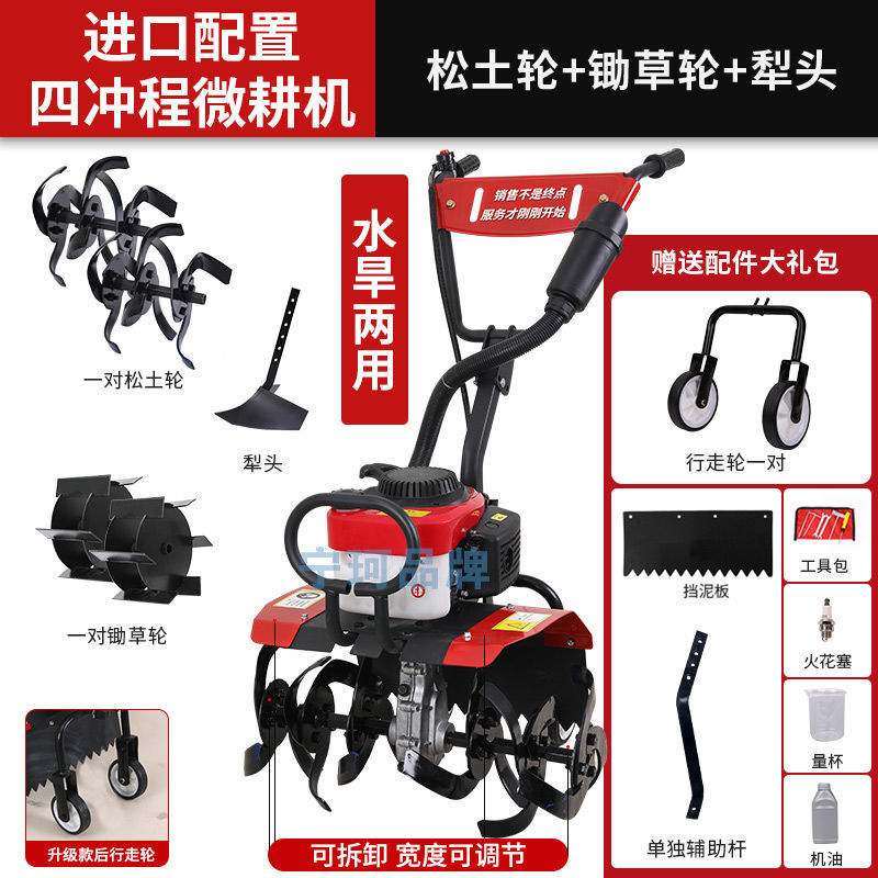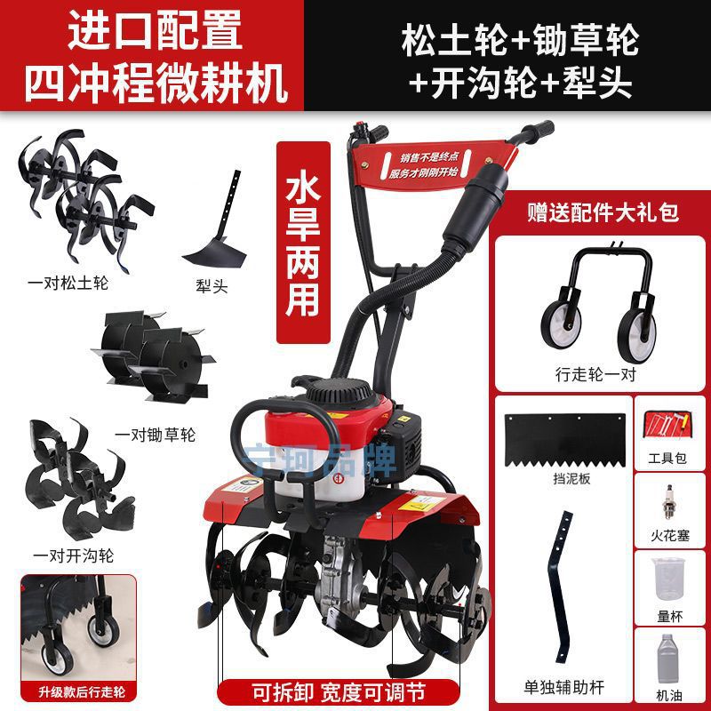 • 새로 업그레이드된 4행정 마이크로 경작기 + 느슨한 토양 괭이 휠 쟁기