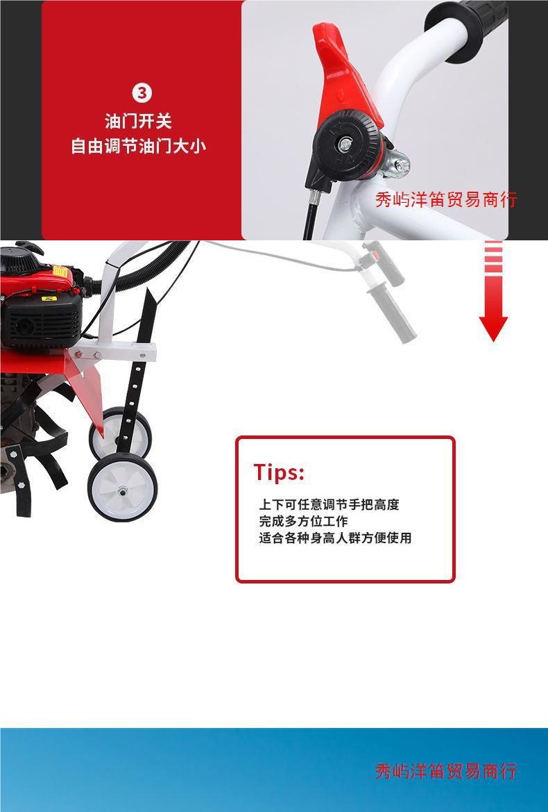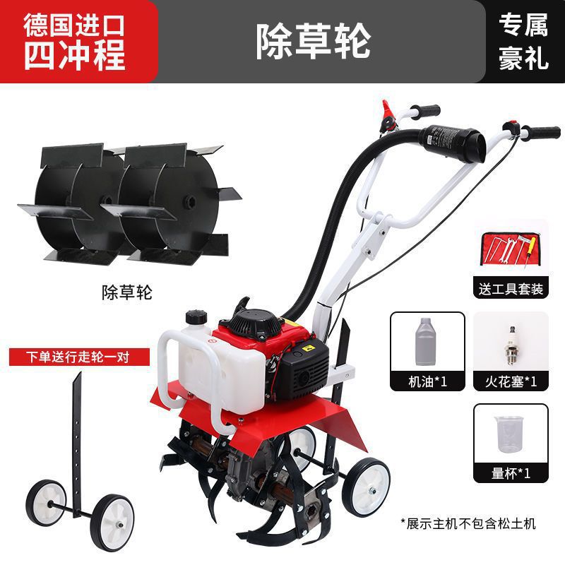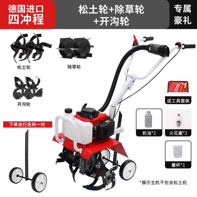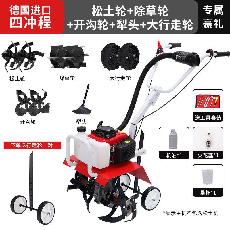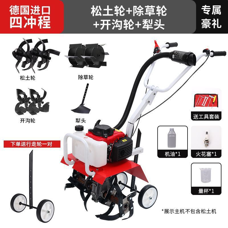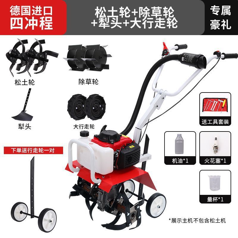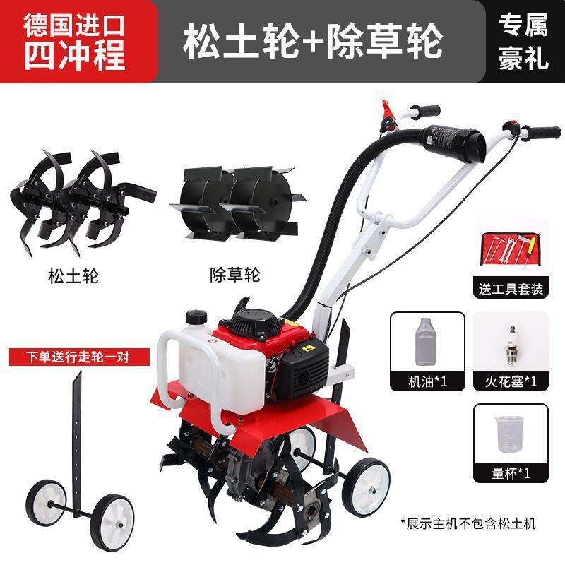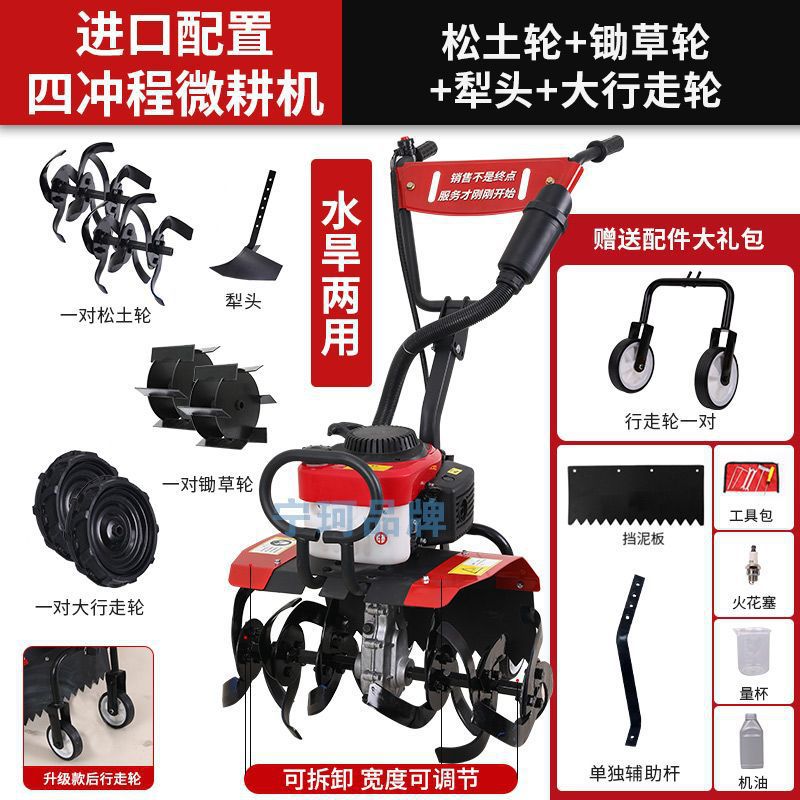 • 새로 업그레이드된 4행정 마이크로 경작기 + 느슨한 토양 괭이 휠 쟁기