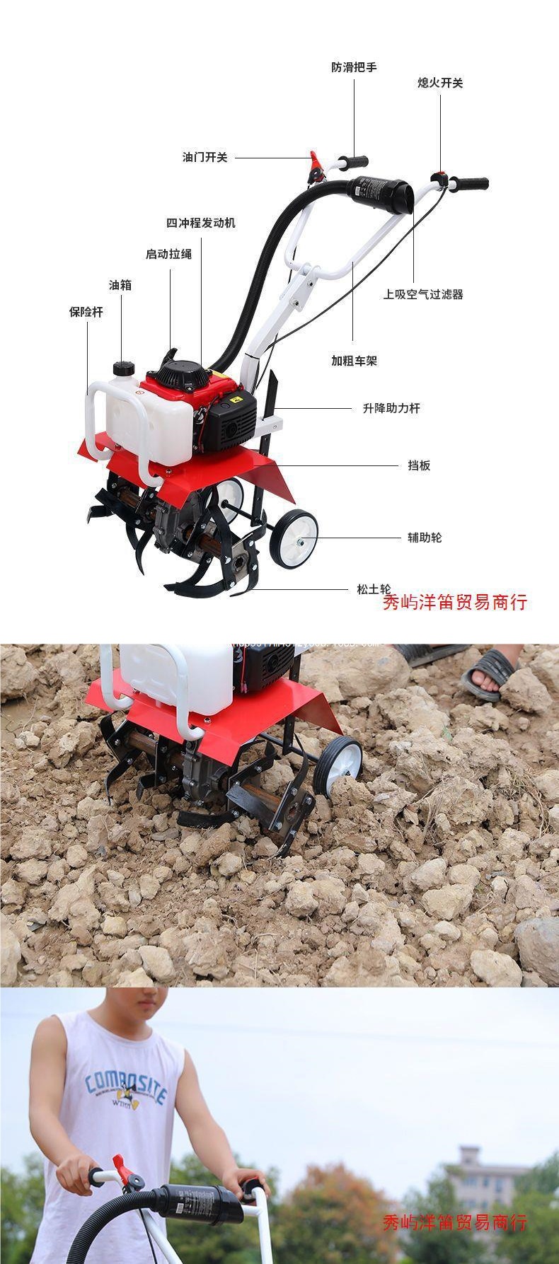 • 새로 업그레이드된 4행정 마이크로 경작, 풀기, 호잉 및 도랑 쟁기