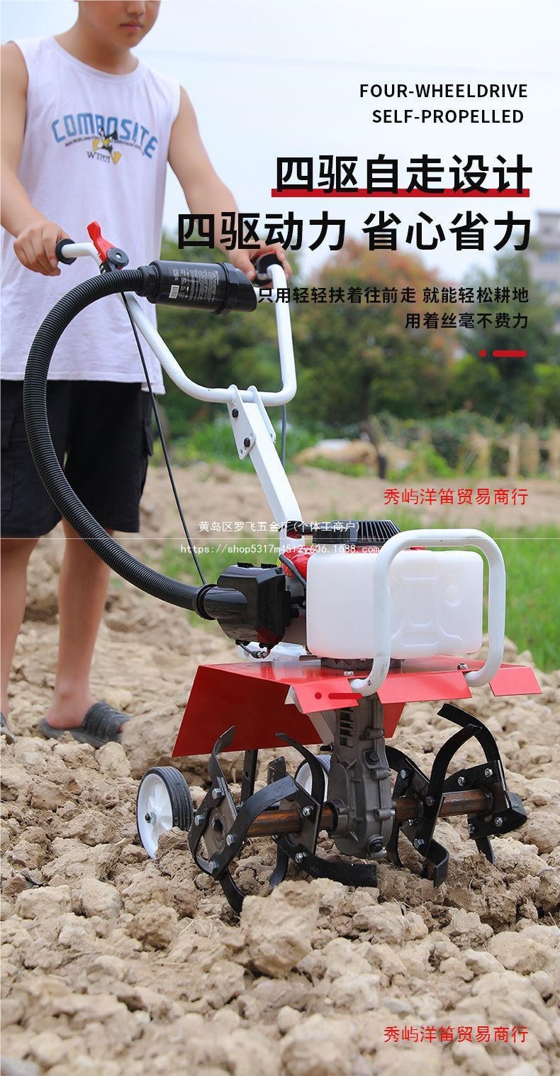 • 새로 업그레이드된 4행정 마이크로 경작기 + 느슨한 토양 괭이질 휠