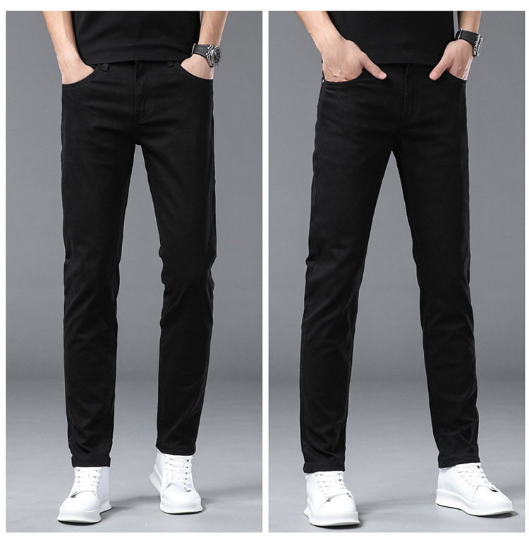 광저우 신탕 청바지 남성 하이 엔드 유럽 상품 슬림 피트 국경 대외 무역 봄 새로운 검은 바지 도매스토어 가기