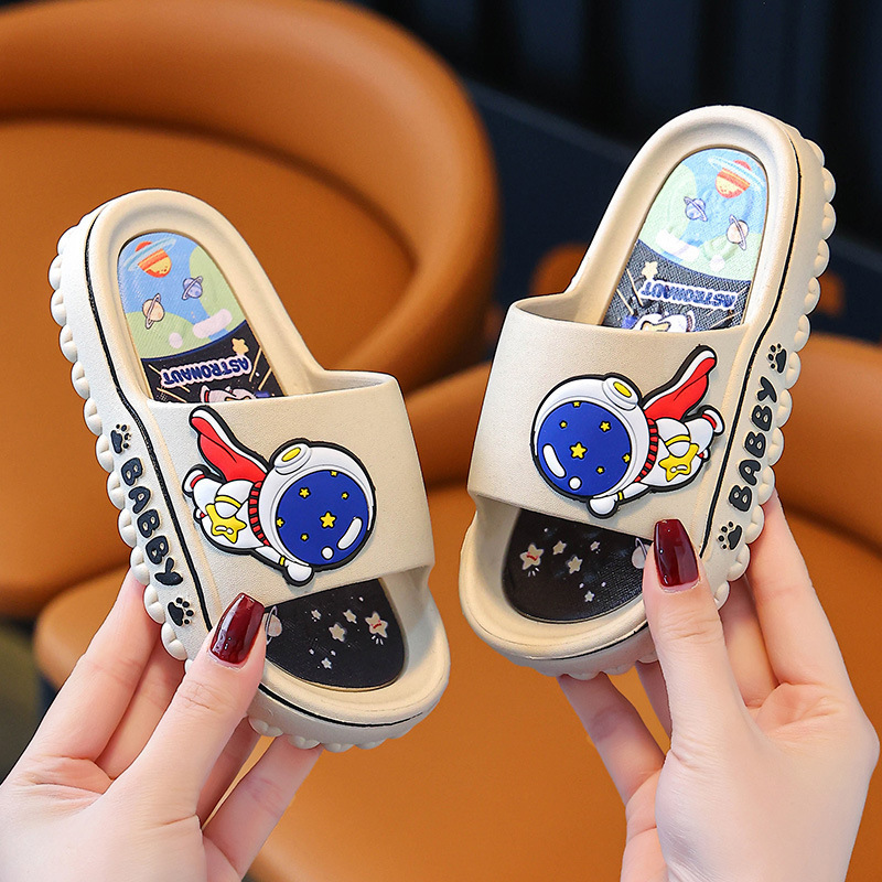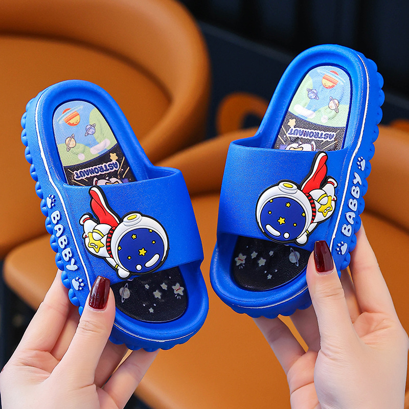 어린이 슬리퍼 여름 2024 새로운 소년 스페이스 맨 실내 홈 어린이와 소녀를위한 부드러운 밑바닥 미끄럼 슬리퍼스토어 가기