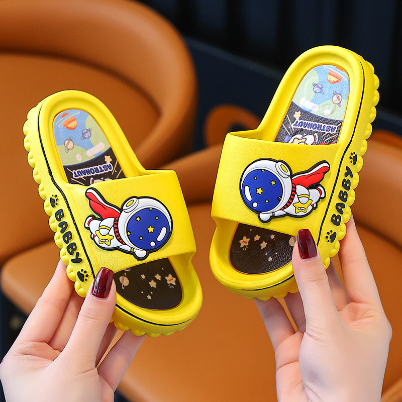 어린이 슬리퍼 여름 2024 새로운 소년 스페이스 맨 실내 홈 어린이와 소녀를위한 부드러운 밑바닥 미끄럼 슬리퍼