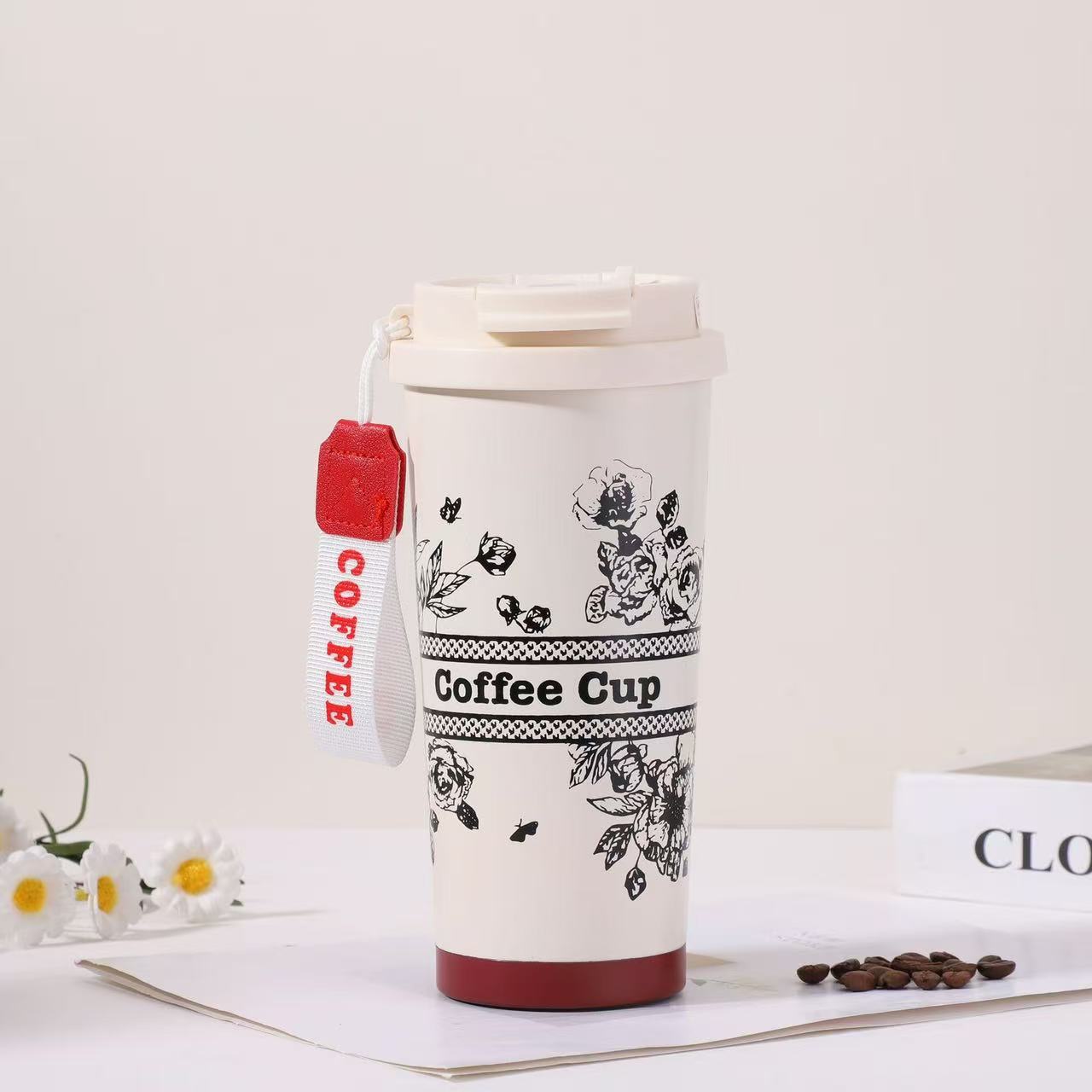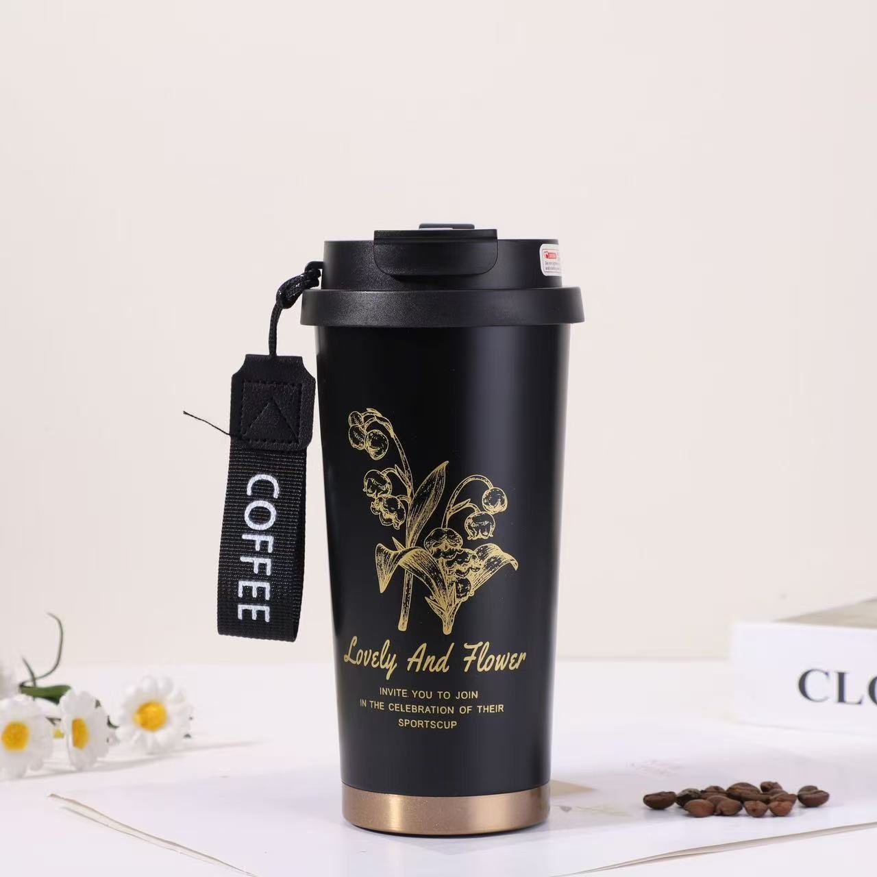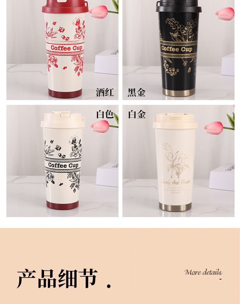 계곡 자동차 보온병 컵 밀짚 컵의 휴대용 316 스테인리스 물 컵 백합 소녀를위한 고가의 이중 음료 커피 컵