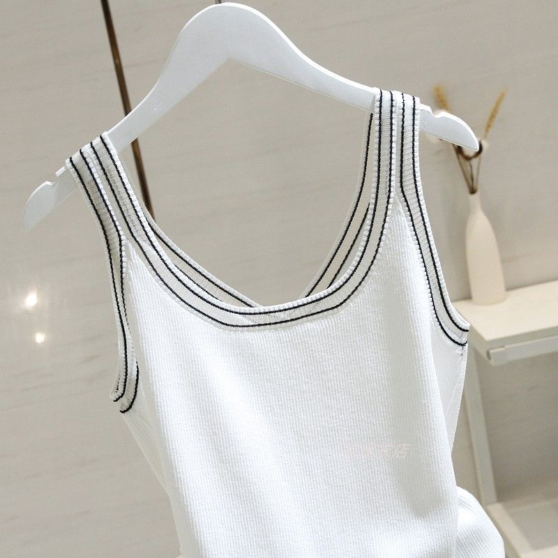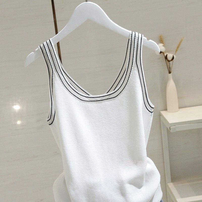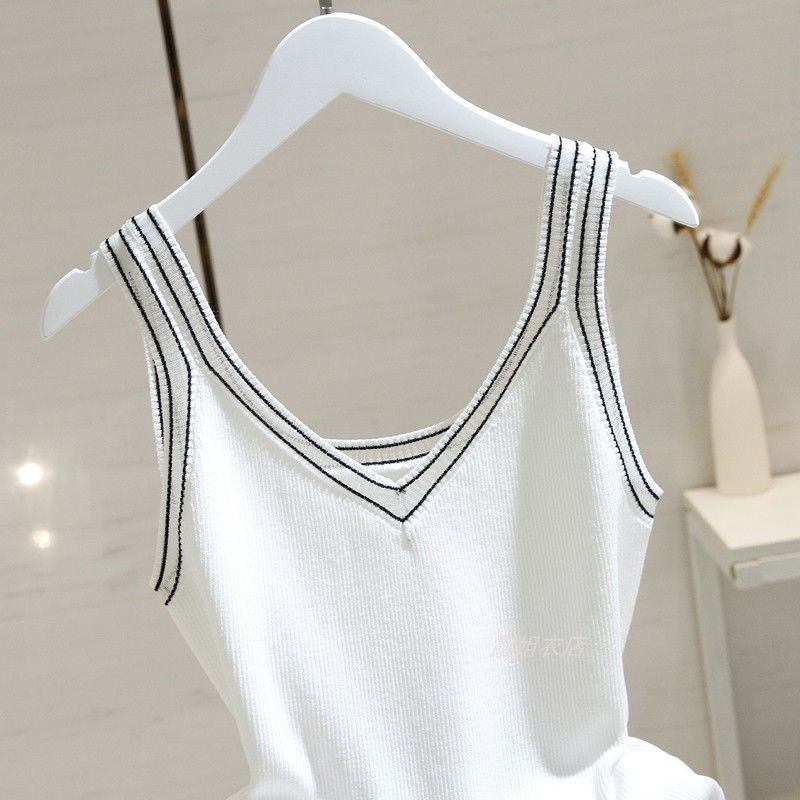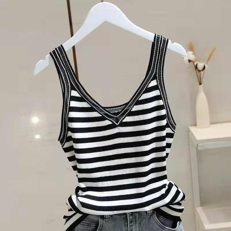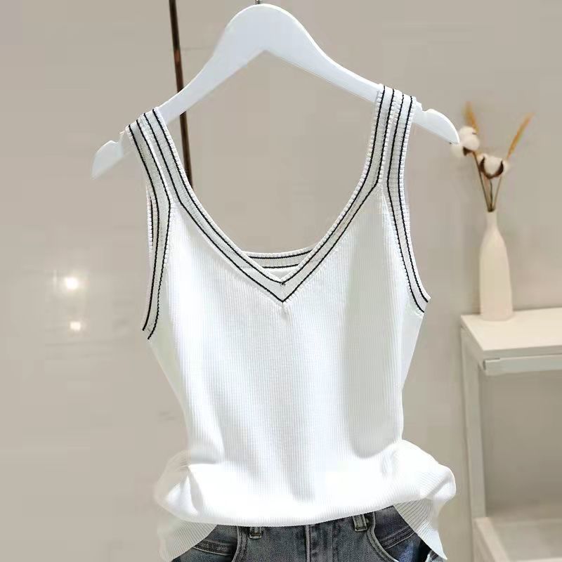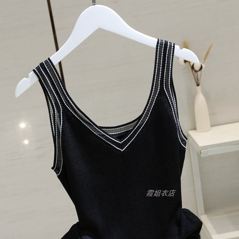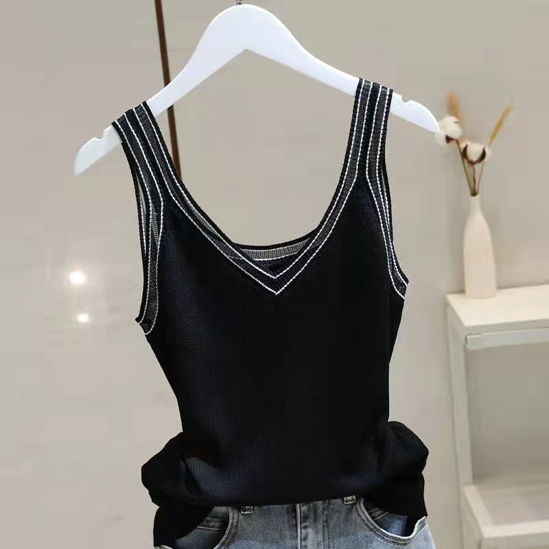 아이스 실크 V-넥 니트 조끼 슬링 여성 2025 년 여름 새로운 스타일 메쉬 스티칭 디자인 센스 틈새 내부 탑