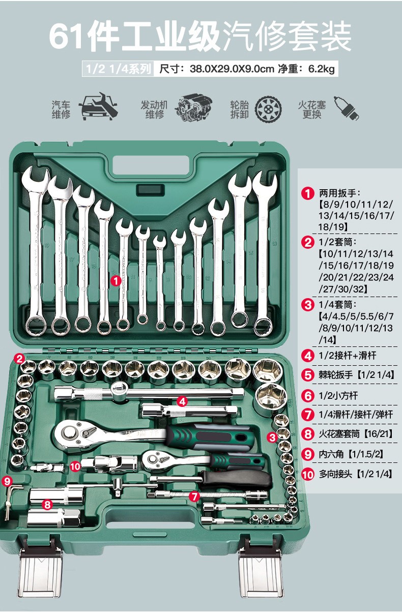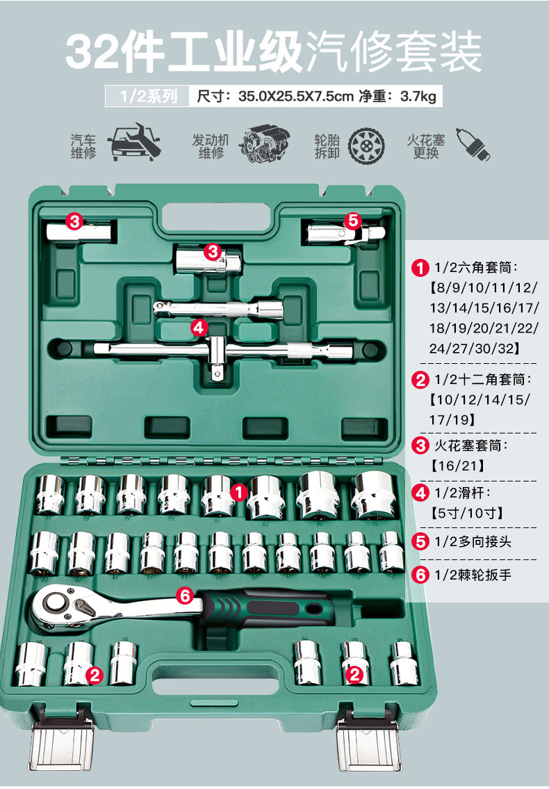 • 업그레이드된 72톱니 곡선 핸들 자동 수리 32피스 세트 - 1/2 Dafei.