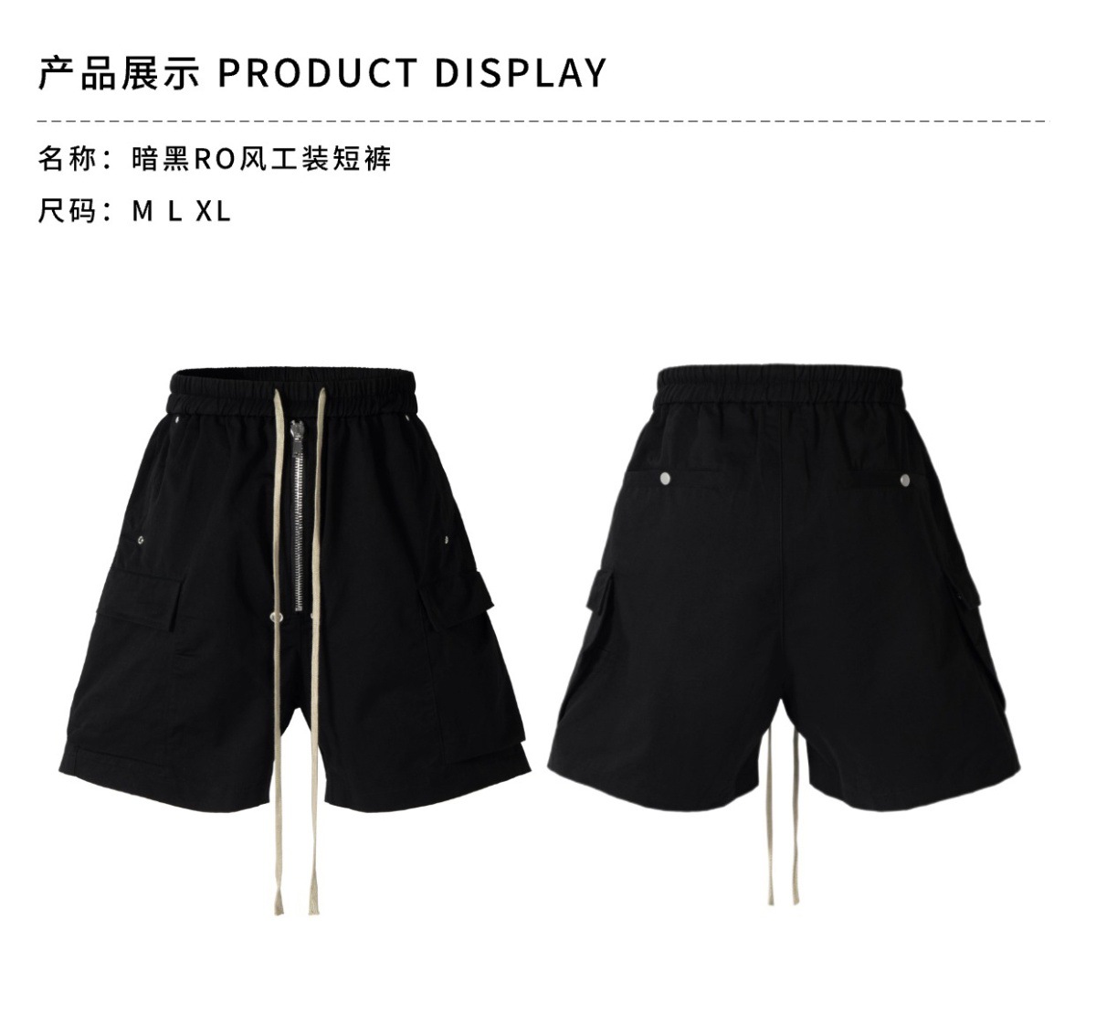2025 다크 RO 스타일 드로스트링 멀티 포켓 툴링 반바지 남성용 틈새 캐주얼 루즈 스트레이트 바지